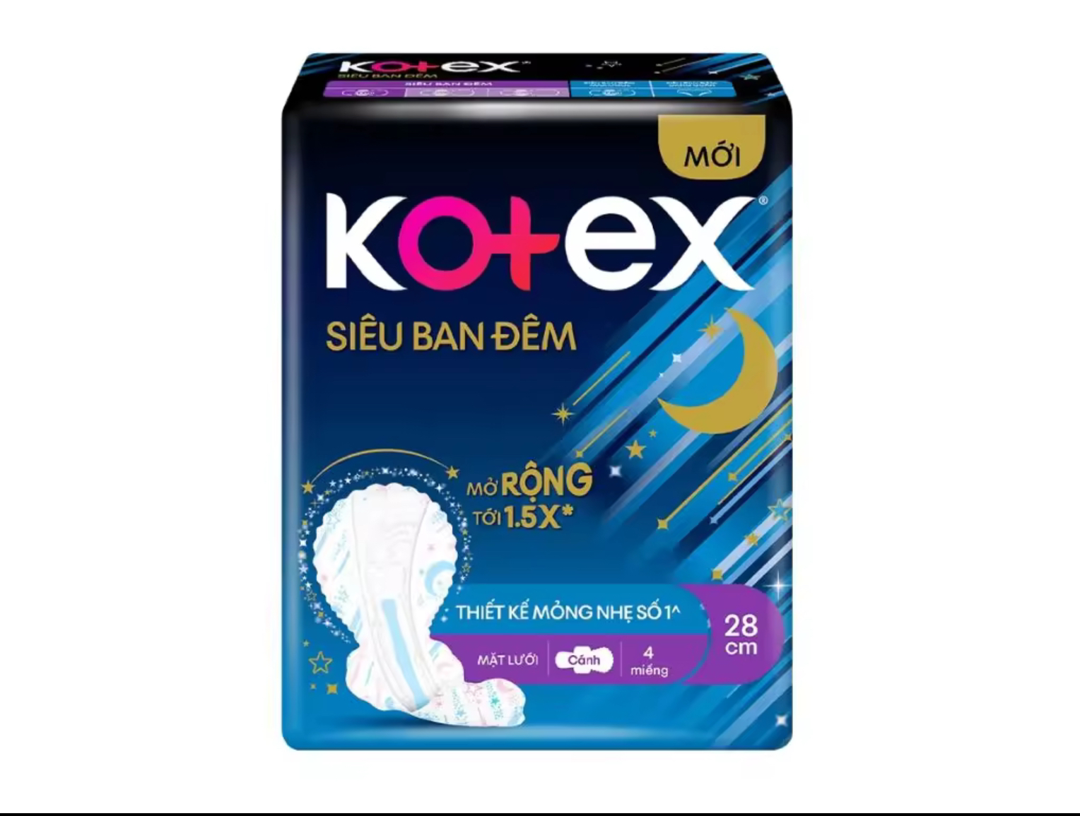 Băng Vệ Sinh KOTEX BẢO VỆ TOÀN DIỆN NGÀY NHIỀU VÀ ĐÊM MỚI Phiên bản 28cm dài hơn 1,2 lần so với băng ban ngày, với: • DÀI HƠN 1,2X bảo vệ tốt hơn cho
