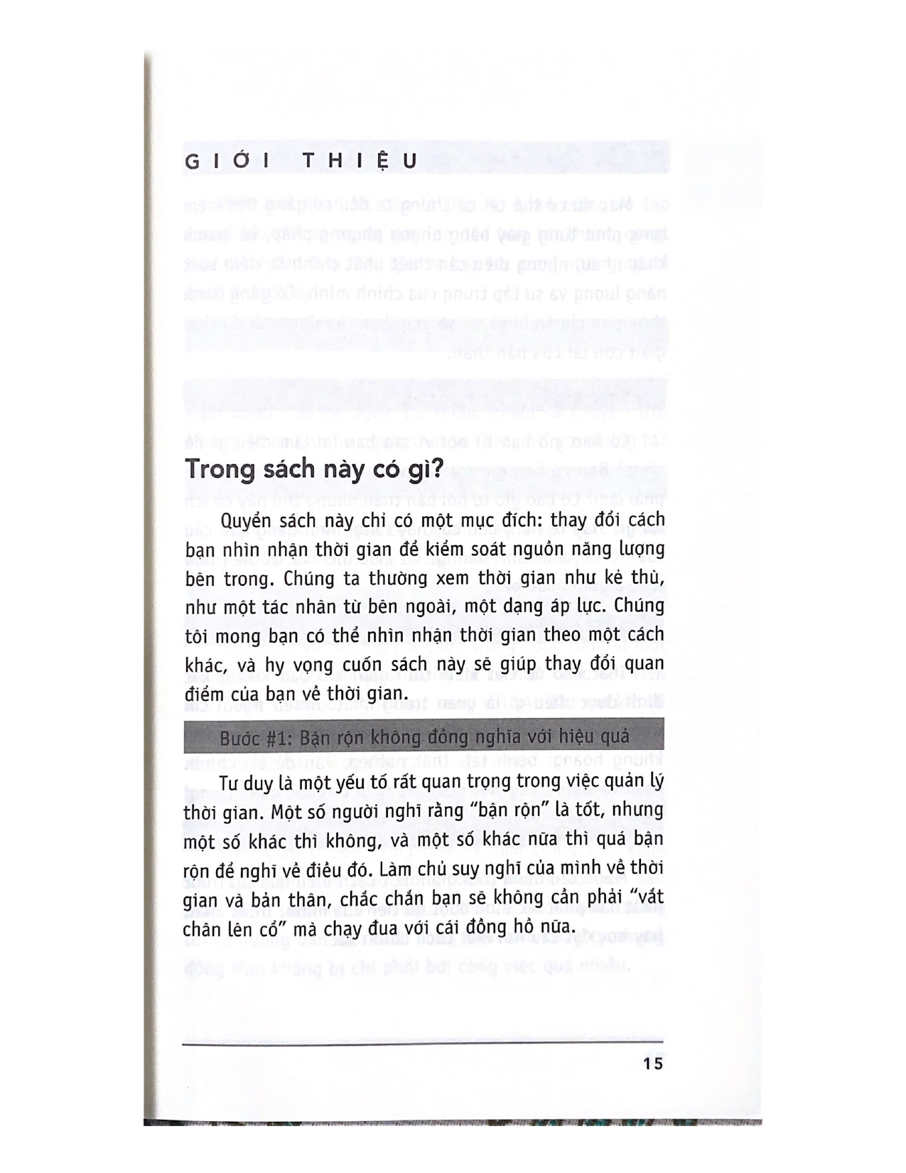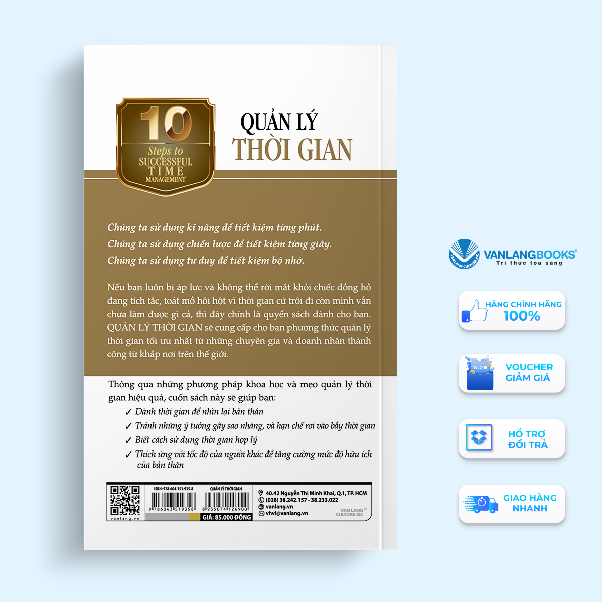 10 Bước Thực Hành - Quản Lý Thời Gian-Vanlangbooks I.Giới thiệu sách Chúng ta sử dụng kĩ năng để tiết kiệm từng phút. Chúng ta sử dụng chiến lược để tiết kiệm từng giây.Chúng ta sử dụng tư duy để tiết kiệm bộ nhớ. Nếu bạn luôn bị áp lực và không thể rời mắt khỏi chiếc đồng hồ đang tích tắc, toát mồ hôi hột vì thời gian cứ trôi đi còn mình vẫn chưa làm được gì cả, thì đây chính là quyển sách dành cho bạn.10 Bước Thực Hành Quản Lý Thời Giansẽ cung cấp cho bạn phương thức quản lý thời gian tối ưu nhất từ những chuyên gia và doanh nhân thành công từ khắp nơi trên thế giới. Thông qua những phương pháp khoa học và mẹo quản lý thời gian hiệu quả, cuốn sách này sẽ giúp bạn: