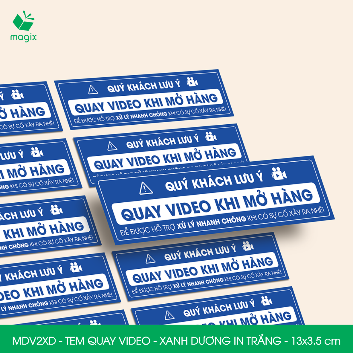 ✨100 Tem chú ý quay video trước khi mở hàng, decal dán hộp - 13x3,5 cm - Xanh dương in trắng - MDV2XD