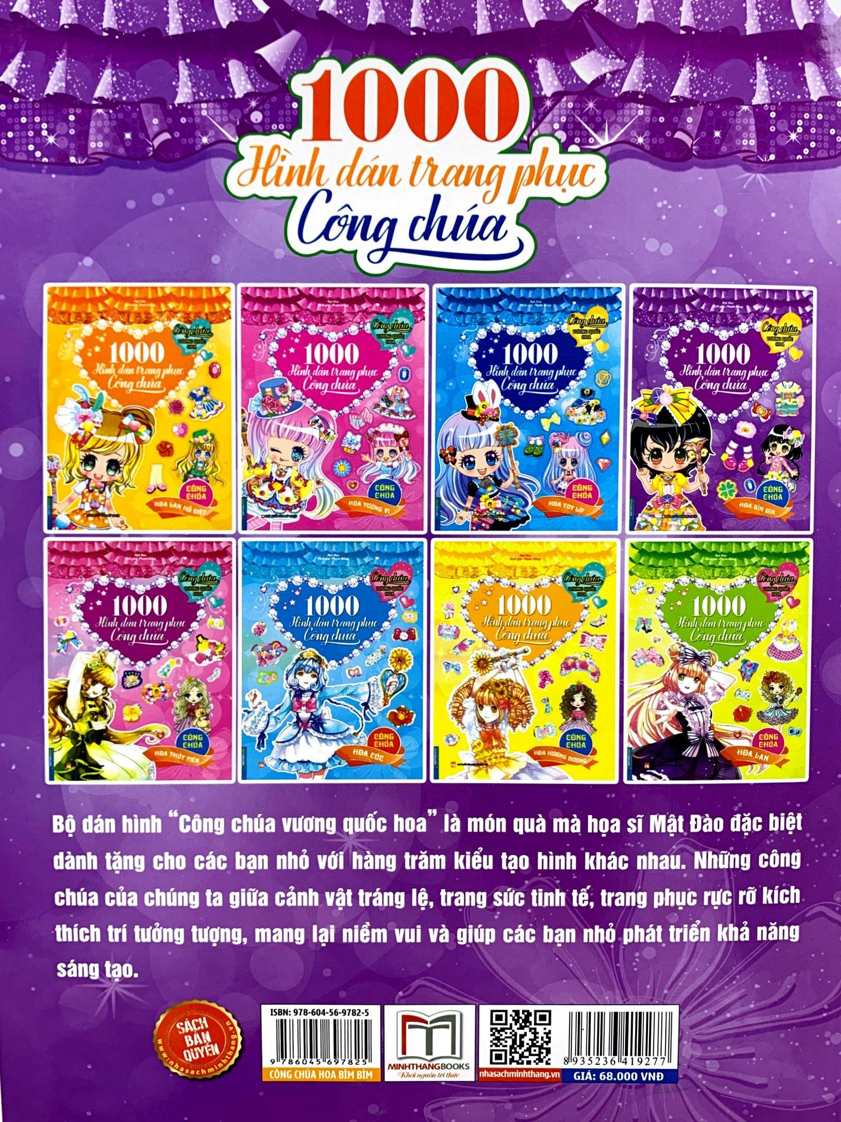 Bộ dán hình " Công chúa Vương Quốc Hoa " là món quà mà họa sĩ Mật Đào đặc biệt dành tặng cho các bạn nhỏ với hàng trăm kiểu tạo hình khác nhau . Những công chúa của chúng ta giữa cảnh vật tráng lệ , trang sức tinh tế , trang phục rực rỡ kích thích trí tưởng tượng, mang lại niềm vui và giúp các bạn nhỏ phát triển khả năng sáng tạo.