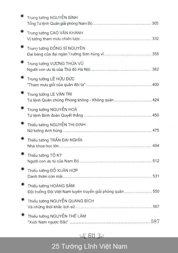 Cuốn sách viết về chân dung các tướng lĩnh Quân đội nhân dân Việt Nam. Đó là những dòng bút ký chân dung về các tướng lĩnh quân đội nhân dân, được giới thiệu ngắn gọn, súc tích, góp phần vào việc giáo dục truyền thống yêu nước chống ngoại xâm cho thanh thiếu niên.
