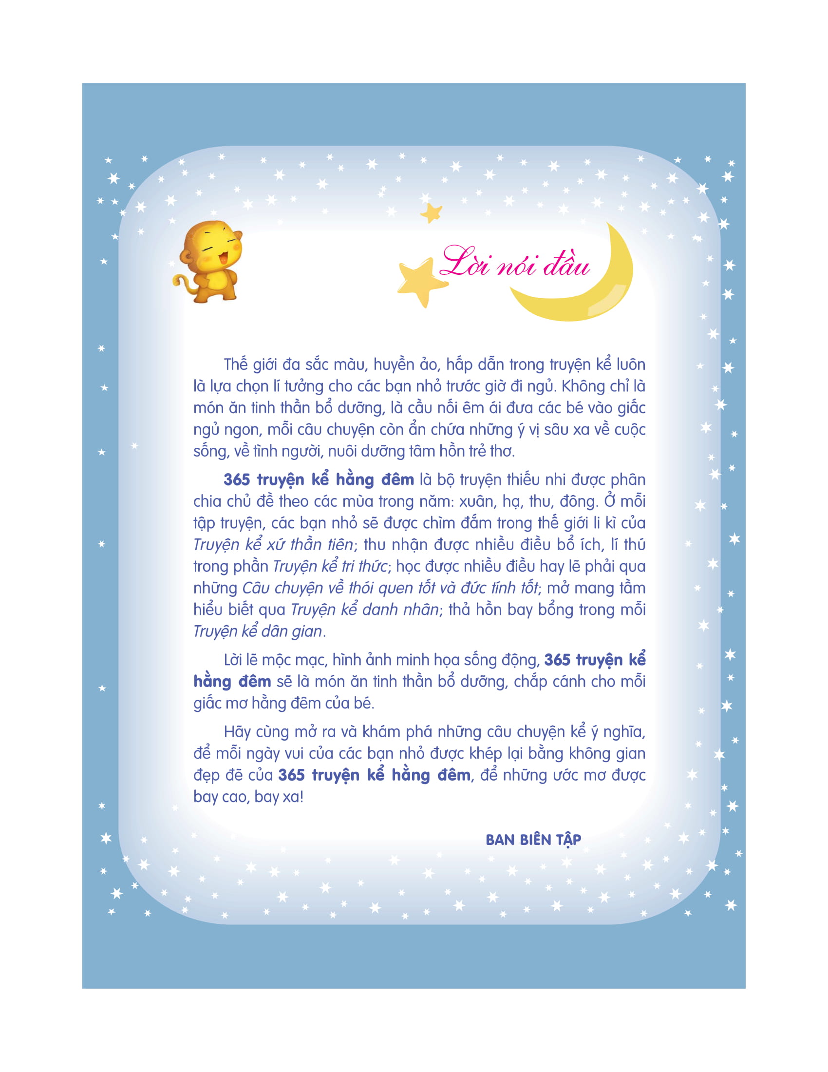 365 Truyện Kể Hằng Đêm – Món quà tuổi thơ ngọt ngào cho bé Trước giờ đi ngủ, còn gì tuyệt vời hơn khi bé được nghe những câu chuyện nhẹ nhàng, giàu ý nghĩa?
