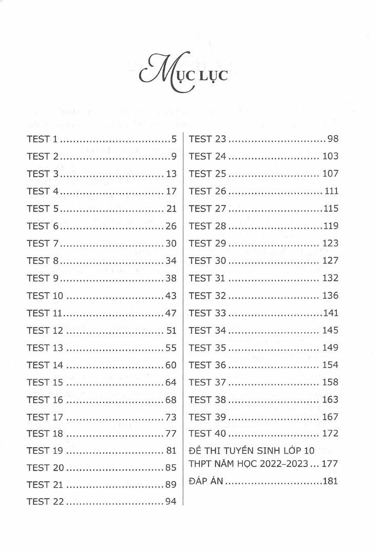 40 đề tiếng Anh thi vào lớp 10 được biên soạn theo cấu trúc đề thi tuyển sinh vào lớp 10 mới nhất của Sở Giáo dục và Đào tạo Thành phố Hồ Chí Minh. Qua các đề thi tham khảo, các em học sinh sẽ được làm quen với bố cục đề thi được thay đổi từ năm 2022 với thời gian làm bài 90 phút. Nội dung bám sát chương trình tiếng Anh bậc trung học cơ sở, chủ yếu là lớp 9, mỗi đề thi gồm 40 câu được chia thành 2 phần: