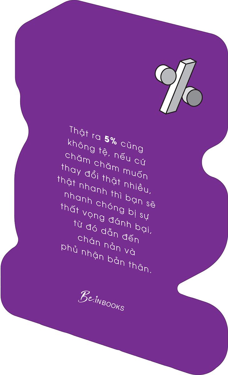 - Cuốn sách được trang Outlook Weekly của Tân Hoa Xã đề xuất năm 2023 Nếu bạn là kiểu người “suy tính rất nhiều nhưng không thể hành động”, hoặc bạn đã nghe không biết bao nhiêu lời khuyên đắt giá nhưng vẫn không thể sống tốt trên đời, có lẽ bạn đã mắc một sai lầm kinh điển: bạn muốn thay đổi cuộc sống của m.ình 100% ngay lập tức. Lý Tùng Úy - bác sĩ tâm lý đang “nổi đình nổi đám” trên mạng xã hội tại Trung Quốc có một cách tiếp cận khác: dù cuộc sống bạn có đang tệ thế nào, bạn hãy cứ giữ nguyên 95% bản thân m.ình như hiện tại. Phần lớn những chuyện xui xẻo trên đời không phải lỗi của bạn, mà do bạn đang ở sai chỗ, sai thời điểm, hoặc nhận định sai về chính m.ình mà thôi. Bạn chỉ cần thay đổi 5% then chốt là được rồi. Để chứng minh hiệu quả của luận điểm này, bác sĩ Lý đã mở hộp thư tư vấn tâm lý trên Internet, và chọn ra những trường hợp tiêu biểu nhất để phản hồi và ghi chép lại trong cuốn sách: “5% CHANGE - Thay đổi nhỏ, thành tựu lớn”. Cuốn sách là tập hợp 44 lá thư của độc giả nhờ bác sĩ Lý giải quyết những khúc mắc về cái tôi, gia đình, công việc và các mối quan hệ xã hội. Đối với mỗi trường hợp, bác sĩ Lý đều đặt thêm những câu hỏi cho độc giả tự khám phá vấn đề sâu hơn, và gợi ý độc giả thử một hành động nhỏ mà họ chưa từng thử rồi viết thư phản hồi lại cho anh.