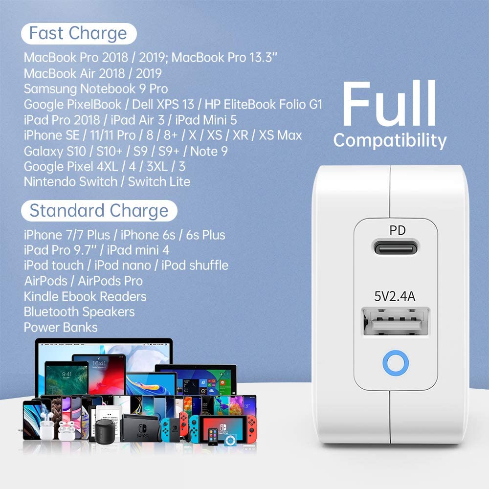 - Khả năng tương thích rộng: Bộ sạc được hoàn thiện để hoạt động với cả sạc PD & QC từ máy tính xách tay đến điện thoại thông minh và máy tính bảng và các thiết bị USB-C tương thích khác.