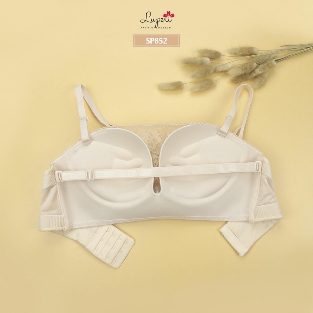 Mã sản phẩm: SP852 Thương hiệu: LUPERI Kiểu dáng: Quả ngang Chất liệu: 90% Polyamide, 10% Elastane Quy cách: Áo rời - Bản 3 móc, thiết kế kèm 1 dây ngang sau lưng giúp ôm