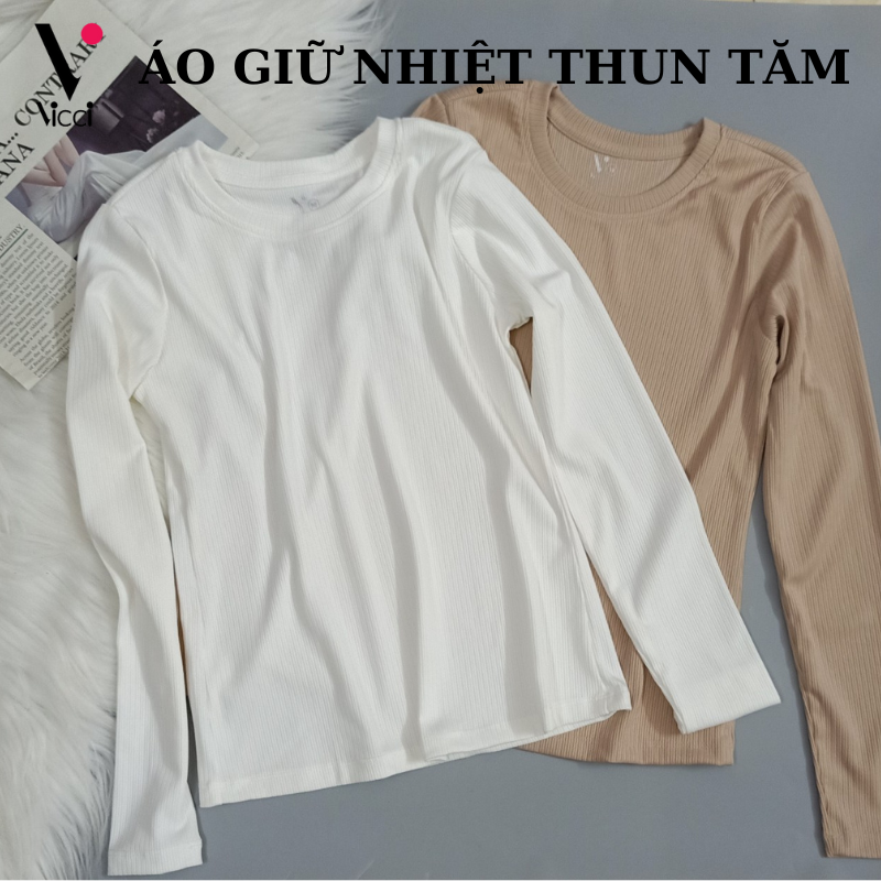 ✨Áo giữ nhiệt nữ thun tăm thu đông cổ tròn Vicci co giãn 4 chiều, ôm sát cơ thể tạo vóc dáng thon gọn