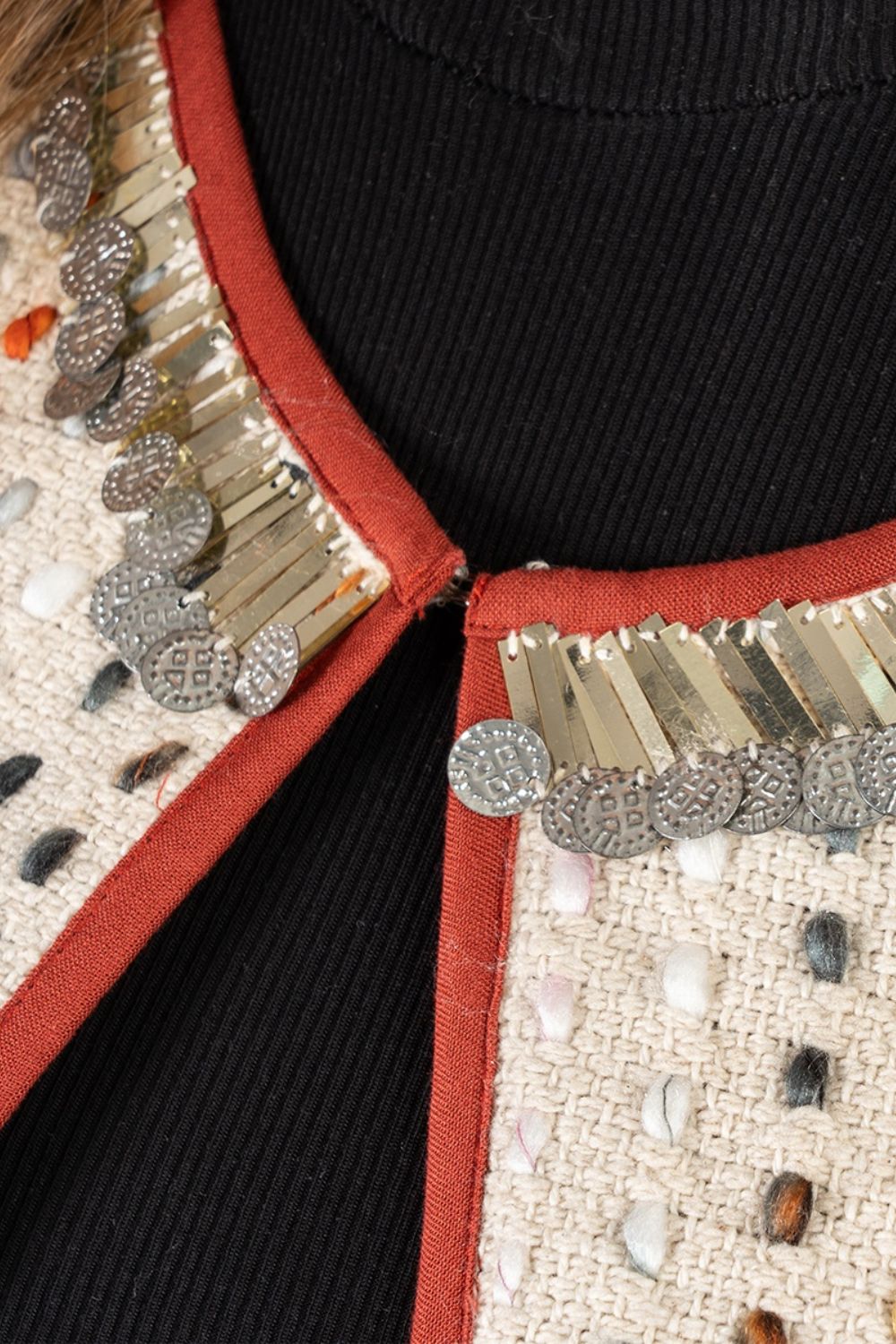 Áo Khoác Boho Kết Kim loại Isla Bonita, chất liệu vải bố cao cấp cá tính, nổi bật phần kim loại đính viền cổ áo, thêu phối trên thân áo. Phom suông. Dài áo 70cm