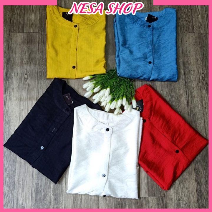 Áo sơ mi nữ form rộng kiểu tay lỡ cổ tròn NeSa Shop, chất liệu Đũi tơ thấm hút mồ hôi, áo sơ mi nữ nhiều màu.