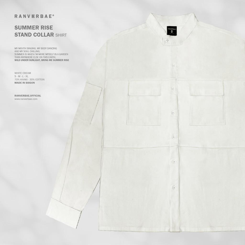 STAND COLLAR Shirt Màu: Trắng Size: S - M - L - XL Chất Liệu: Khaki Hướng dẫn giặt ủi: + Giặt với nước lạnh + Chỉnh chế độ máy giặt vòng quay vừa không