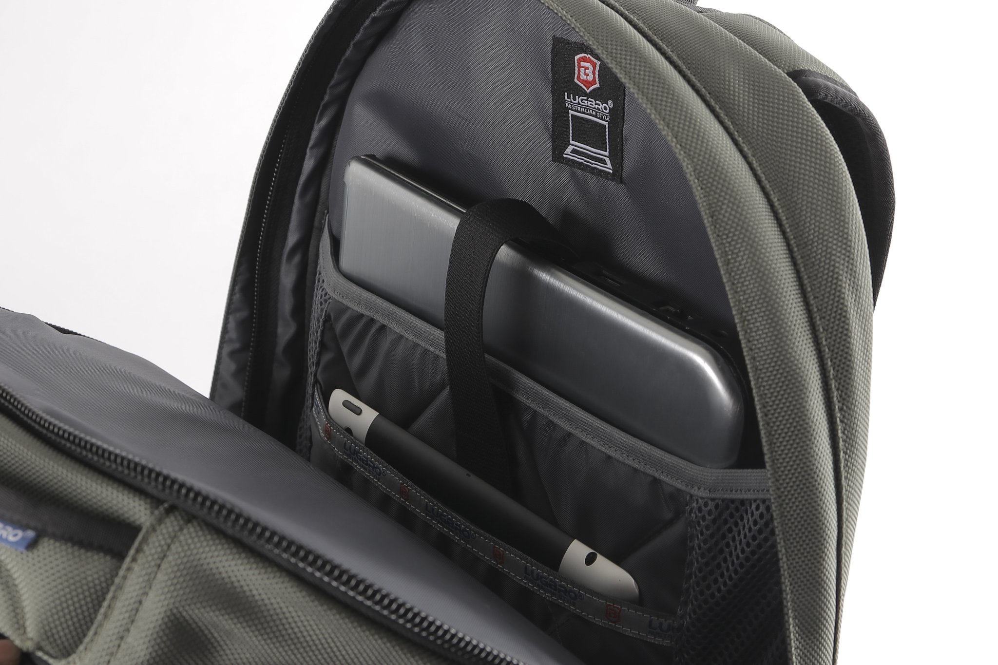 FEATURES - Business backpack with dedicated compartment to protect 15.6" laptop - Spacious U-shaped main compartment opening design increases luggage accessibility - Organized storage in the front compartment keeps essentials neatly organized - Expandable side