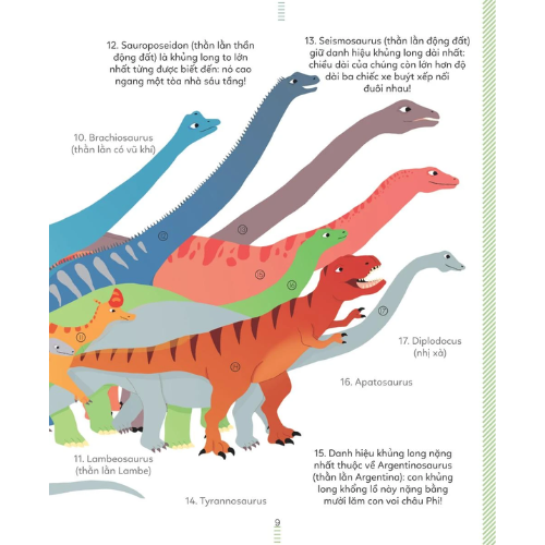Khủng long không chỉ gồm các loài to lớn xù xì đâu, mà đa dạng và sống động hơn rất nhiều! Em có biết không, có nhiều loài khủng long bé xíu, cũng có những con to cồng kềnh nặng nề, có loài nhanh thoăn thoắt và khéo léo như tên trộm ranh ma, cũng có loài ù lì chậm chạp! Cuốn bách khoa thư sinh động này sẽ giúp em hiểu hết về các loài khủng long - sinh vật cổ đại từng thống trị mặt đất!