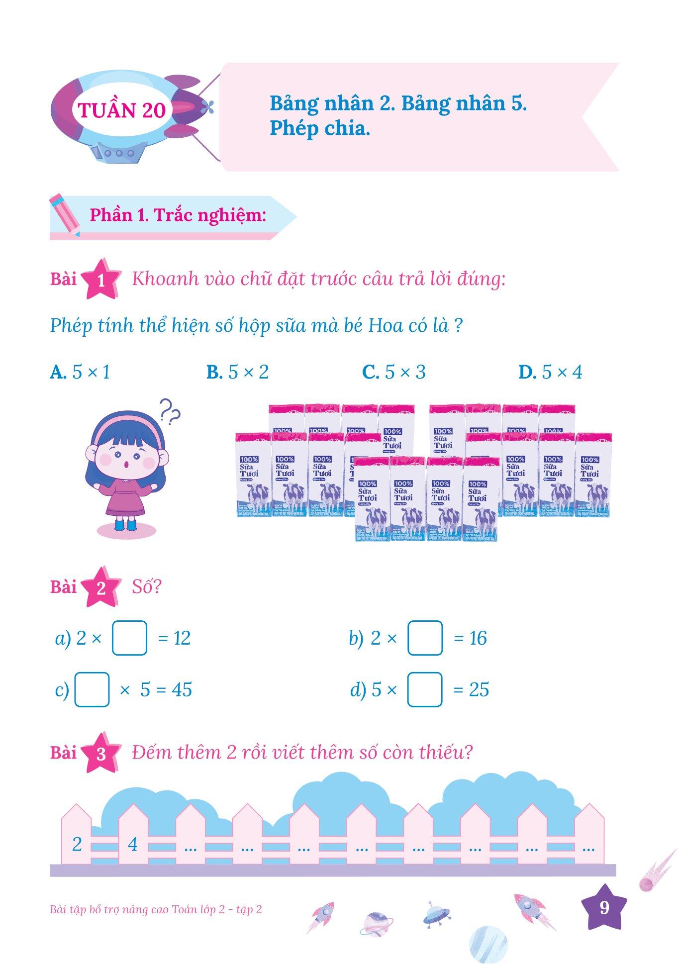 Hệ thống 17 bài học trong sách bám sát theo chương trình 17 tuần học trên lớp. Trong đó, mỗi bài học bao gồm 10 bài tập nhằm ôn luyện và thực hành kiến thức Toán từ cơ bản đến nâng cao. Ngoài ra, bài tập còn chia thành 2 dạng: