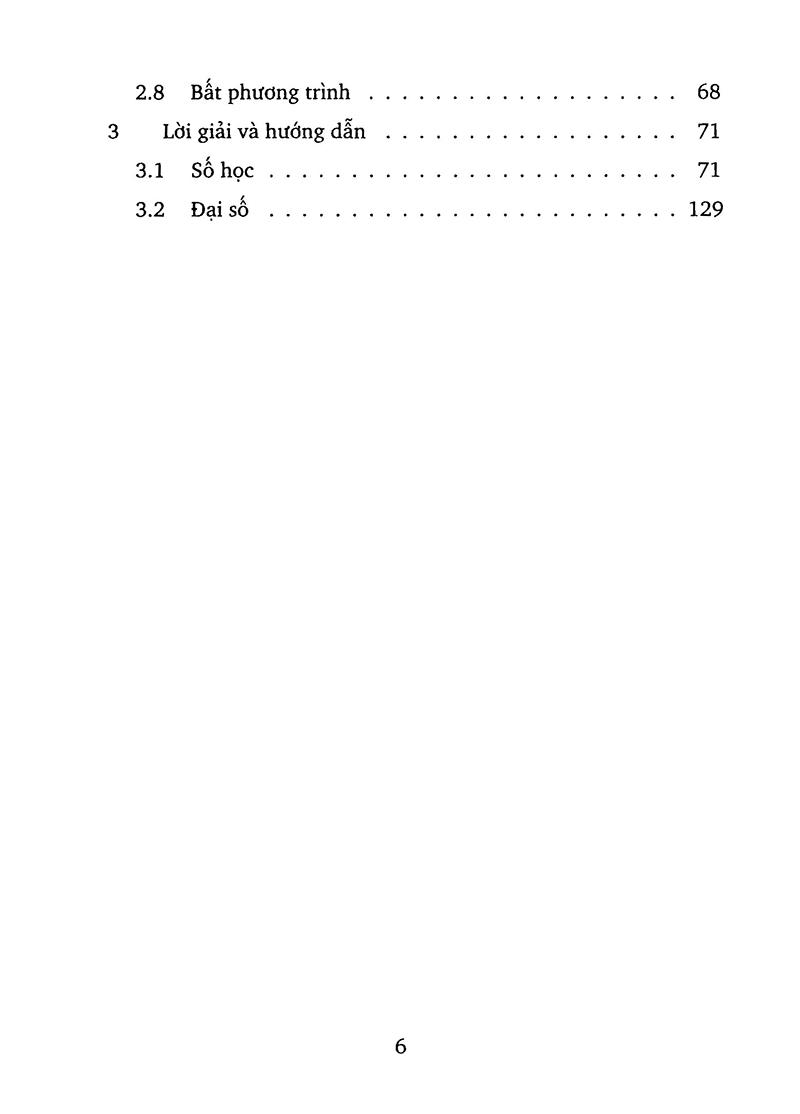 Các bài tập trong cuốn sách này ứng với toàn bộ chương trình số học và đại số ở bậc trung học cơ sở, và được chia làm hai phần: số học (Chương 1) và đại số (Chương 2). Mỗi chương lại được chia thành nhiều mục theo các chủ đề khác nhau, ở đầu mỗi mục thường có phần tóm tắt lý thuyết, nhắc lại các khái niệm, định lý và phương pháp cơ bản. Nhiều bài trong sách thuộc loại khó, đòi hỏi đào sâu suy nghĩ. Tất cả các bài tận đều có lời giải khá chi tiết ở Phần Lời giải và hướng dẫn. Các bạn học sinh chỉ nên xem lòi giải sau khi đã tự thử làm các bài tập.