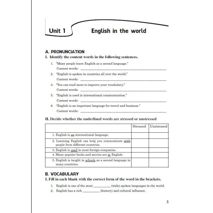 A. Pronunciation: Bao gồm các bài tập về kĩ năng phát âm