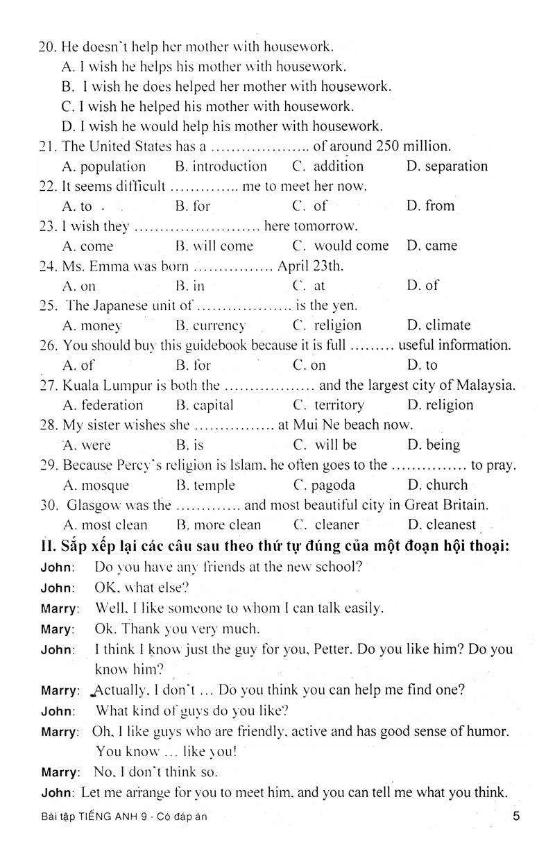 Bài Tập Tiếng Anh Lớp 9 (Có Đáp Án)