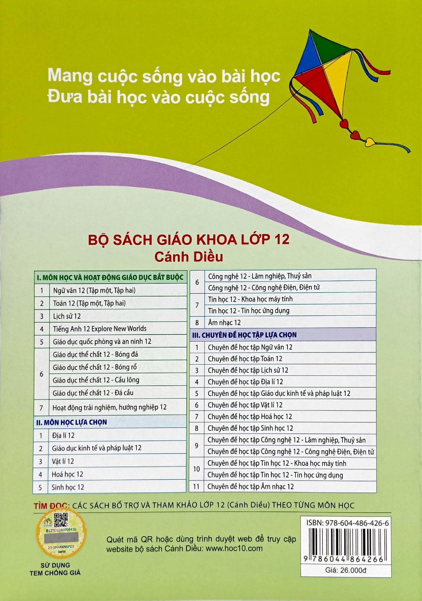 Bộ sách Cánh diều lớp 12 giúp các em học sinh, các Thầy cô giáo và quý Phụ huynh thuận lợi trong việc tổ chức các hoạt động dạy học theo hướng tăng cường khả năng hoạt động độc lập, tự học và làm bài tập ở nhà… giúp học sinh hình thành và phát triển năng lực học tập các môn học một cách tốt nhất.