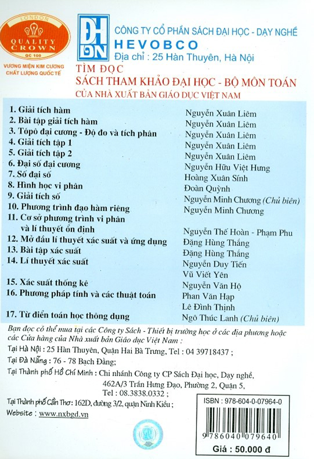 Sách - Xác suất thống kê - Dành cho sinh viên các trường kỹ thuật và công nghệ Tác giả: PGS. TS. Tô Văn Ban Nhà xuất bản: Nhà Xuất Bản Giáo Dục Việt Nam