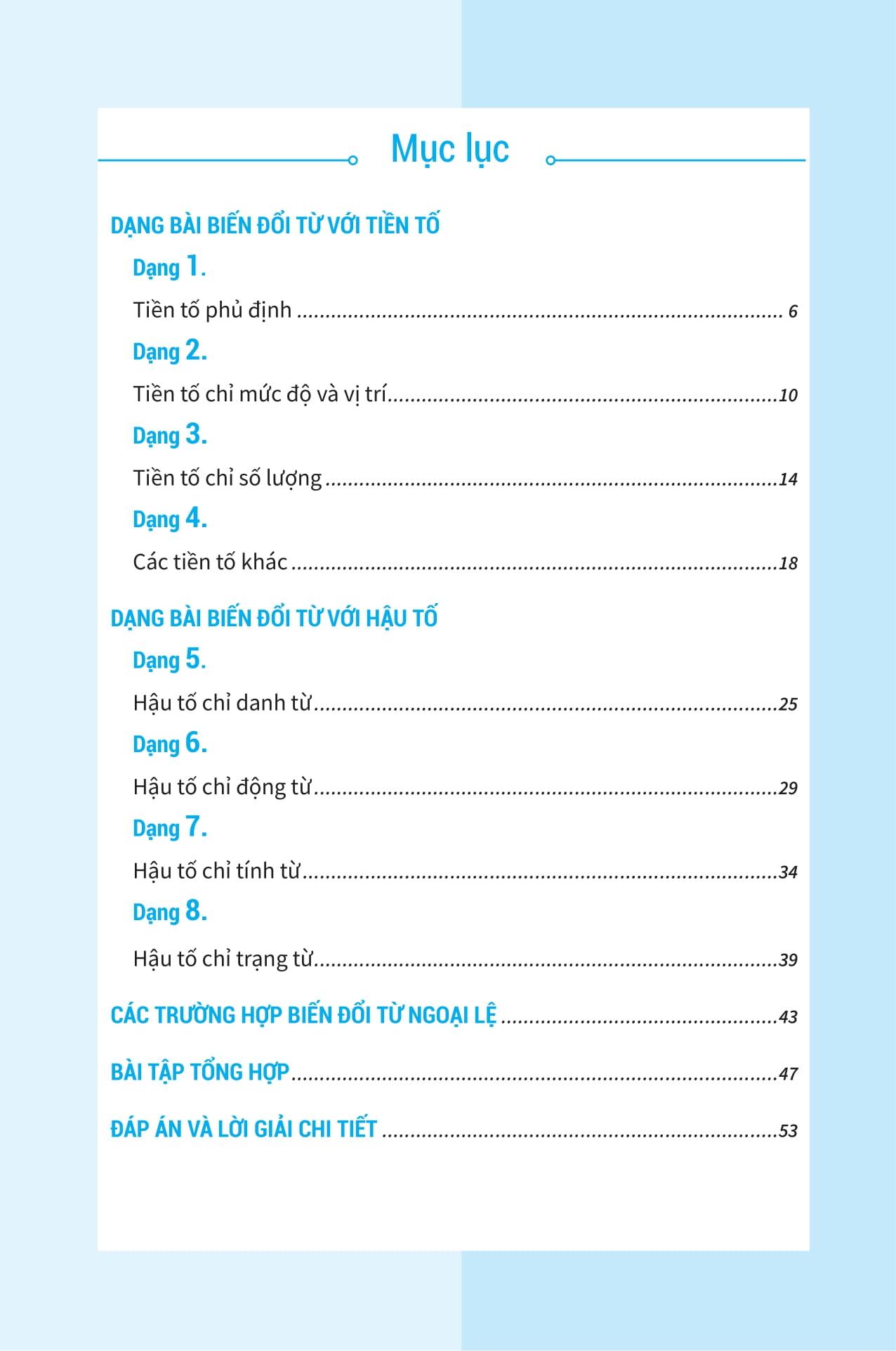 Sách còn bổ sung các dạng bài tập tổng hợp về từ loại thường gặp nhất, 100% xuất hiện trong đề thi
