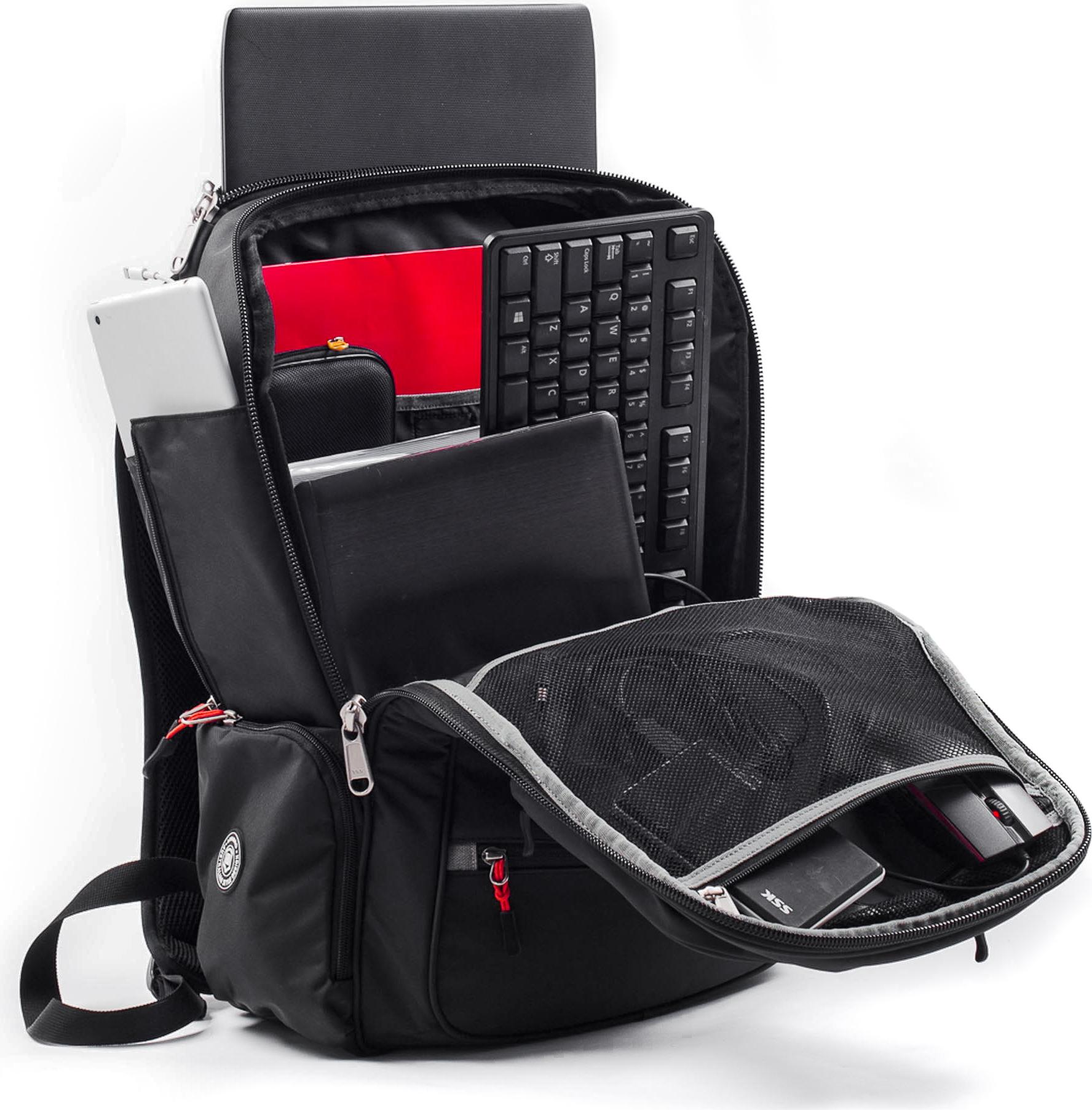 Hai ngăn chính rộng rãi thiết kế đặc biệt thông minh dành riêng cho các game thủ chuyên nghiệp rất lý tưởng dùng trong các chuyến hành trình đi xa mà phải mang theo cả bộ latop, phụ kiện cần thiết dùng trong gaming (tai nghe, chuột, bàn phím đủ các kích thước và các công cụ khác)... hoăc có thể được sử dụng như 1 vali thu gọn cực kì lý tưởng dùng trong các chuyến công tác và các chuyến hành trình du lịch.(Hai ngăn chính rộng rãi và 04 ngăn phụ thiết kế đa chức năng có thể chứa quần áo từ 05 đến 10 bộ đồ, giày dép...., chứa Laptop 14 inch –17.3 inch,Tablet 10 –12 inch riêng biệt chống trầy xước và rung lắc , ngăn điện thoại di động, thẻ nhớ, ổ cứng, tai nghe, hồ sơ, giấy tờ, mắt kính, khe đựng viết, ngăn chứa Namecard, Passport …)