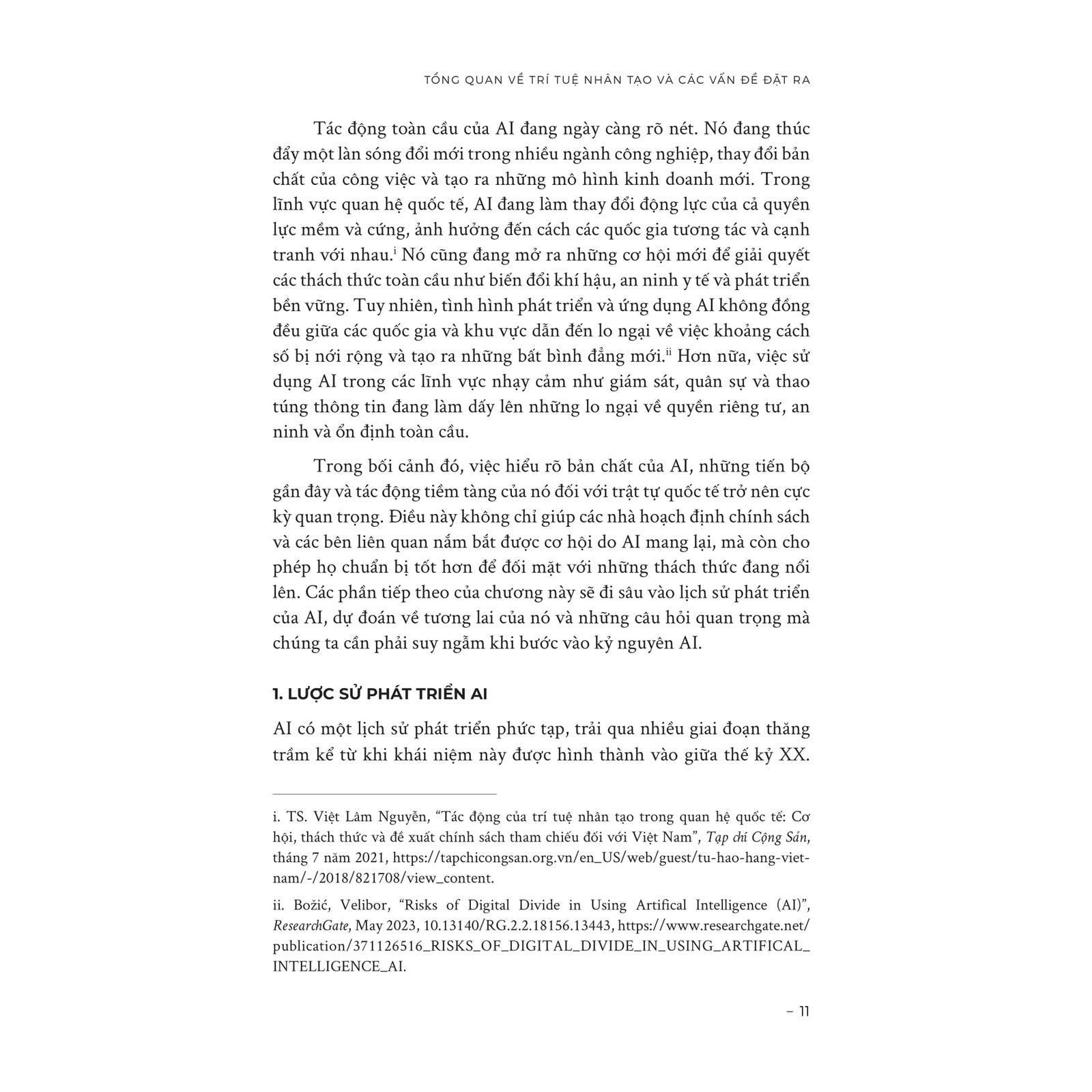 Đặc biệt, cuốn sách dành sự quan tâm đặc biệt đến vị thế và triển vọng của Việt Nam trong kỷ nguyên AI. Nhóm tác giả phân tích những cơ hội và thách thức mà Việt Nam phải đối mặt, đồng thời đưa ra những gợi ý chính sách cụ thể để đất nước có thể tận dụng tối đa tiềm năng của AI, đồng thời giảm thiểu những rủi ro tiềm ẩn.