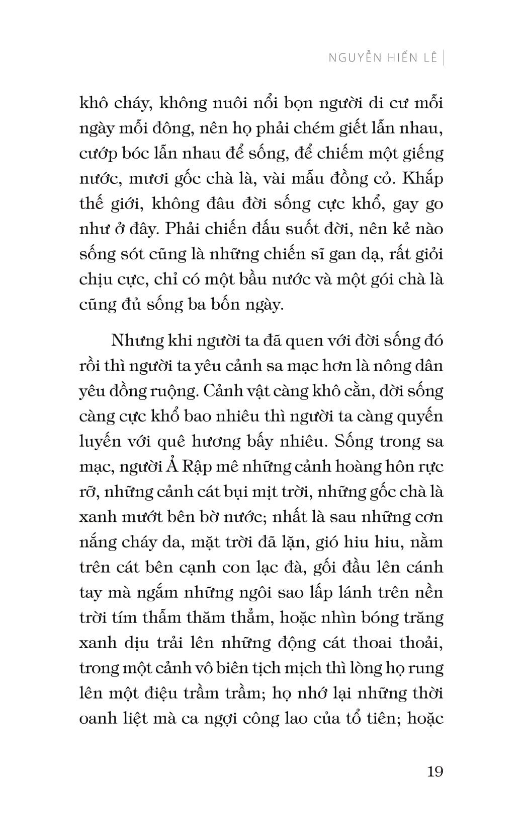 Vì vậy mà ba bốn chục năm nay ở bán đảo Ả Rập xảy ra không biết bao nhiêu xung đột: xung đột giữa các đế quốc, xung đột giữa các quốc gia Ả Rập, xung đột giữa các đảng phái trong mỗi quốc gia. [...] Lịch sử hiện đại bán đảo Ả Rập li kì như lịch sử Trung Hoa thời Đông Chu liệt quốc, và cũng có đủ những nhân vật lạ lùng như nhân vật Đông Chu.
