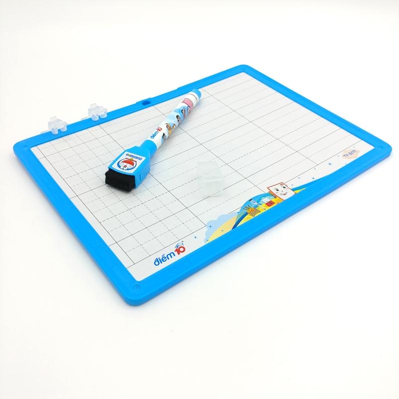 Mô tả sản phẩm Thông số kĩ thuật : Thương hiệu Điểm 10 Quy cách 1 bảng/túi - Là loại bảng bộ, 1 mặt viết phấn, 1 mặt viết lông bảng, trên bảng có kẹp
