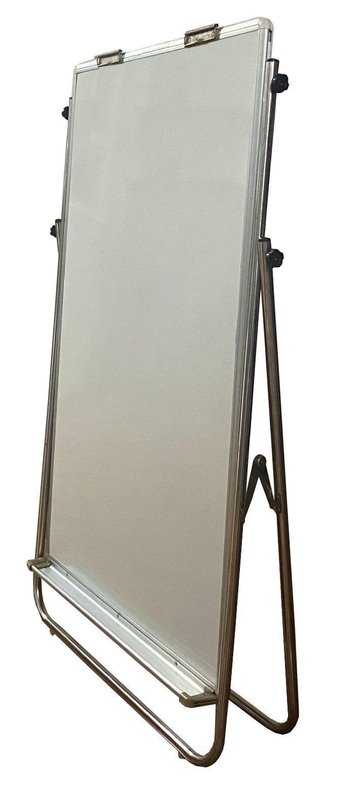 Bảng kích thước 80x120cm , mặt bảng kẹp được giấy A0, viết dễ xóa BẢNG: - Mặt bảng: màu trắng viết bút lông Poly Taiwan: không lem & không dính mực sau khi xóa, không kẻ