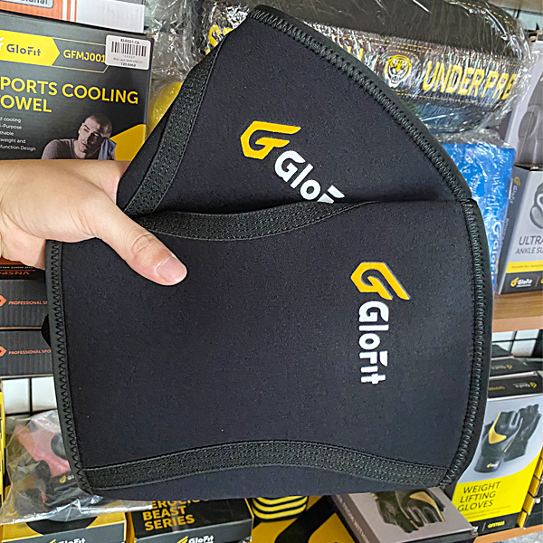 » Băng gối tập gym Glofit GFX005 bảo vệ và hỗ trợ cho khớp gối khi tập luyện, ôm và bảo vệ các bó cơ xung quanh đầu gối, giảm các áp lực đè nén lên khớp gối phòng các tổn thương có thể xảy ra trong quá trình tập luyện