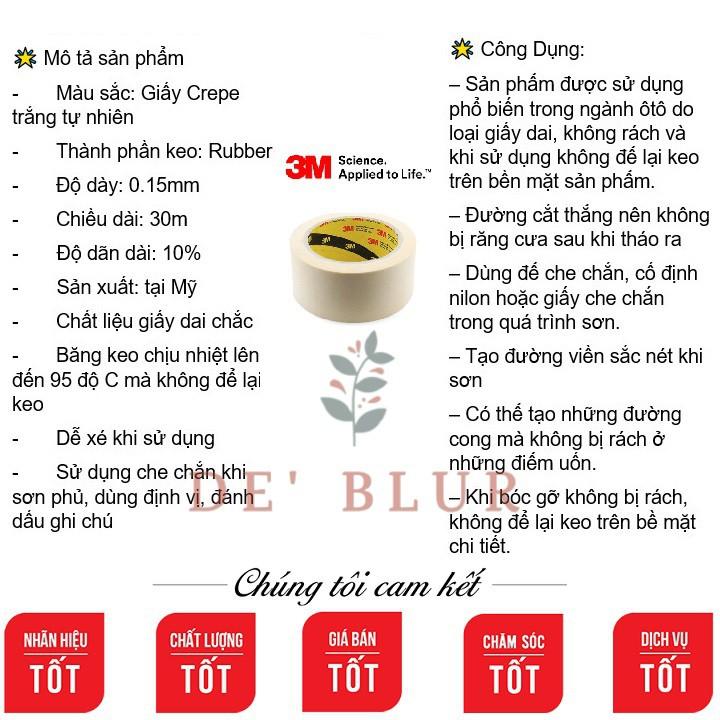 Băng keo giấy 3M Masking Tape 320 Trắng là băng keo giấy thông dụng chuyên sử dụng che chắn trong sơn phủ, mỏng 0.15mm với tính năng nổi bật: - Chất liệu giấy dai chắc