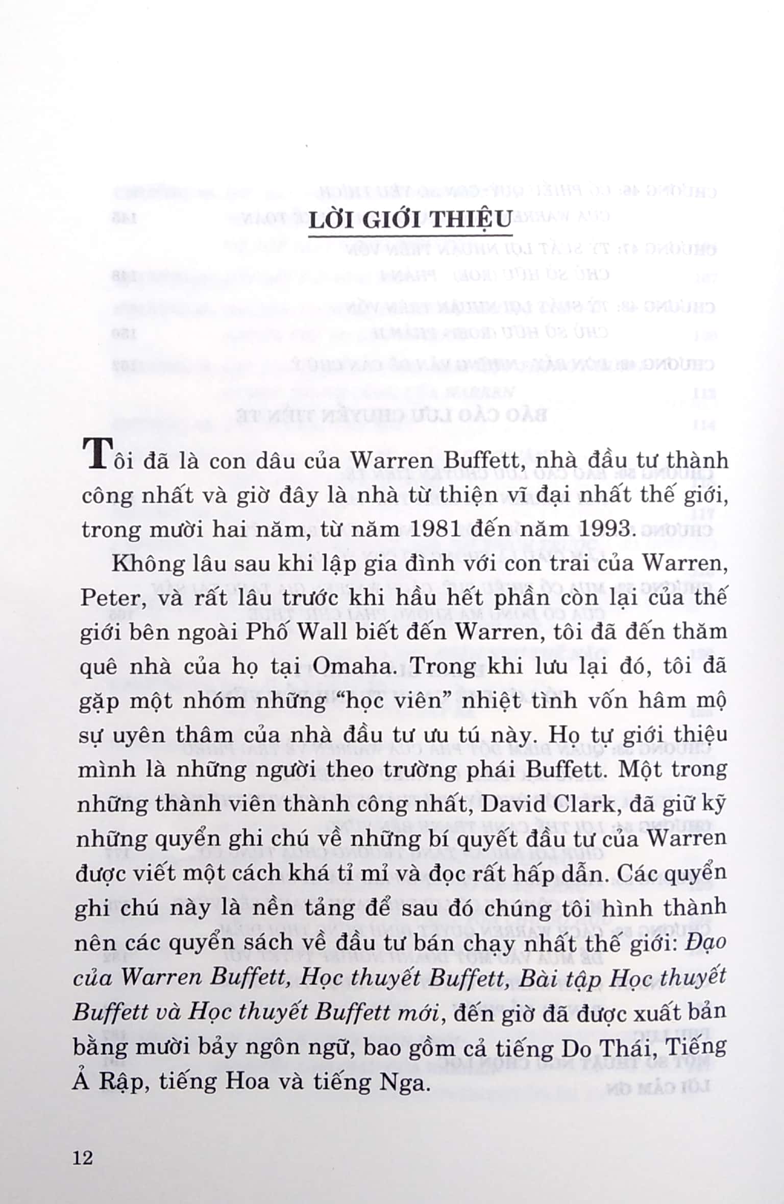 Hy vọng quyển sách này sẽ giúp bạn tạo được sự thay đổi như Warren đã từng tạo ra bằng cách giúp bạn vượt qua các mô hình định giá thuộc trường phái Graham, như Warren đã làm, khám phá sức mạnh tạo nên sự giàu có dài hạn phi thường của một công ty có lợi thế cạnh tranh bền vững hơn các đối thủ và có cơ hội tham gia vào hội những nhà đầu tư khôn ngoan trên toàn thế giới.