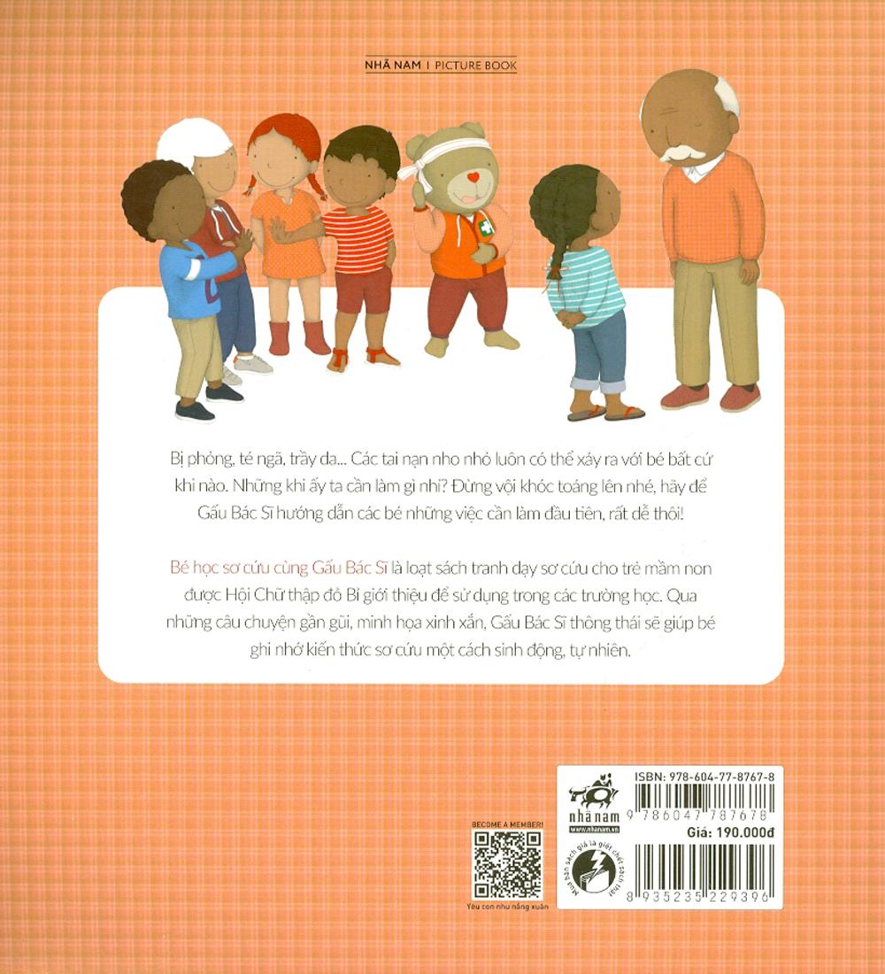 Bé học sơ cứu cùng Gấu Bác Sĩ là cuốn sách gộp lại từ 6 cuốn mỏng ở phiên bản gốc. Đây là loạt sách tranh dạy sơ cứu cho trẻ mầm non được Hội Chữ Thập đỏ Bỉ giới thiệu để sử dụng trong các trường học. Qua những câu chuyện gần gũi, minh họa xinh xắn, Gấu Bác Sĩ thông thái sẽ giúp bé ghi nhớ kiến thức sơ cứu một cách sinh động, tự nhiên.