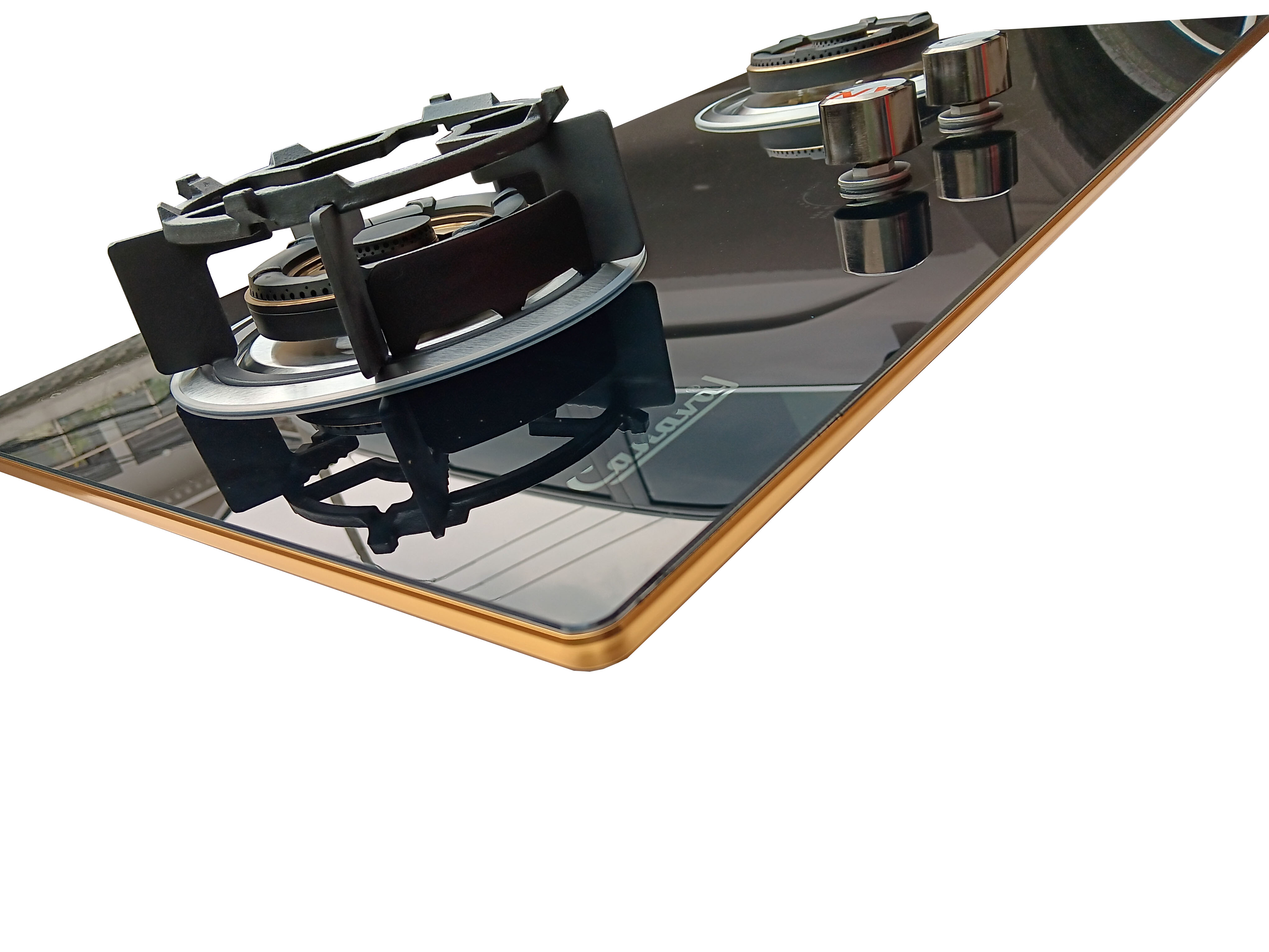 Bếp gas âm kính dày 8mm 2 lò Hệ thống mâm chia lửa sabaf Khay chống tràn inox 304 Kiềng gang siêu bền Đánh lửa bằng Pin IC 1.5V Nút bấm hợp kim siêu bền,