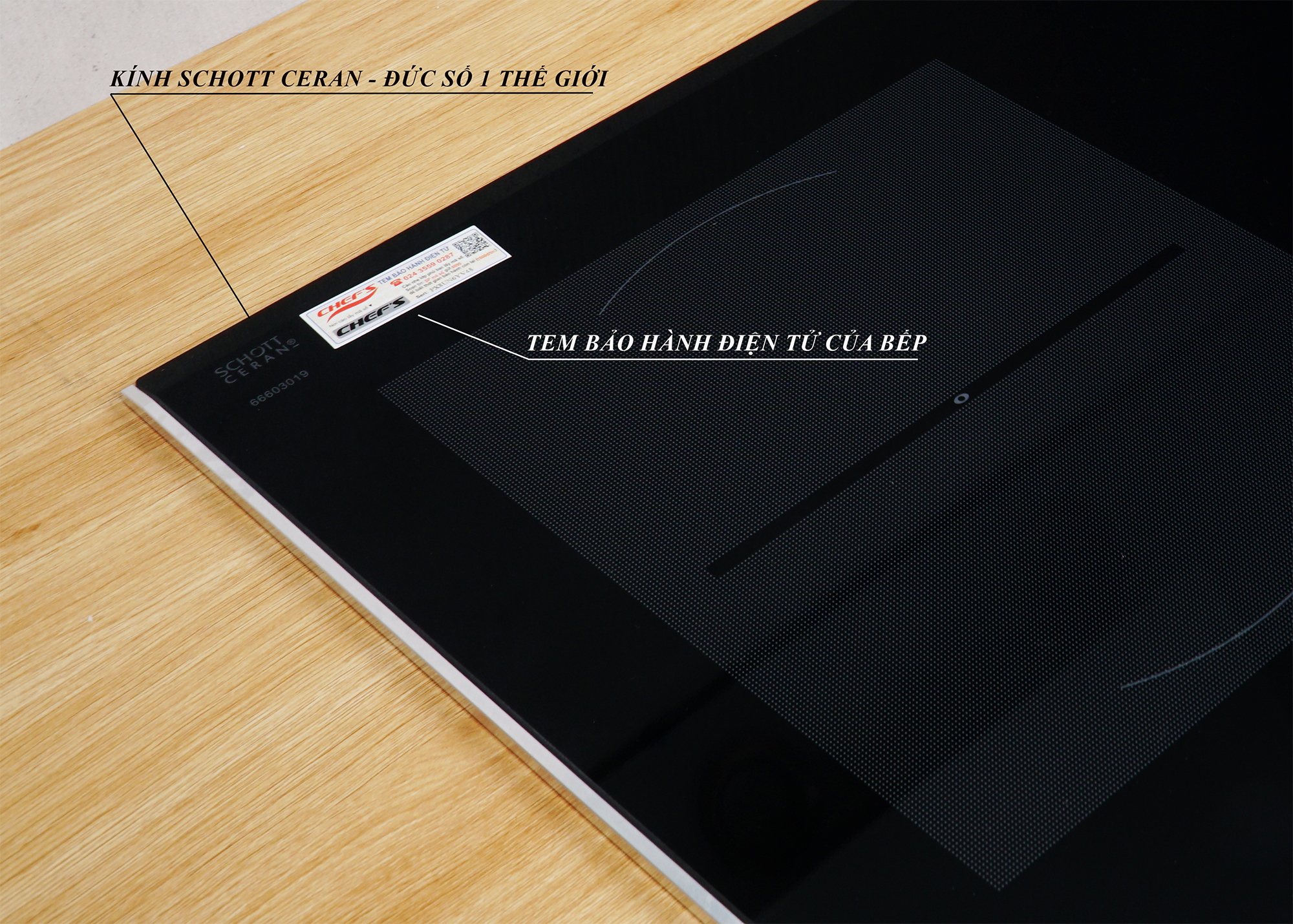 • Bếp 03 từ • Mặt kính Schott Ceran Made in Germany siêu bền, chịu lực chịu sốc nhiệt • Bo mạch EGO Made in Germany • Đầu đốt EGO Made in Germany • Bàn