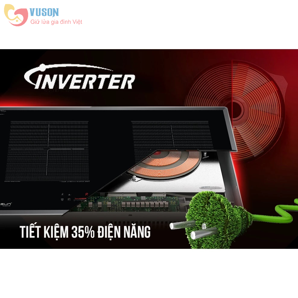 Bếp từ EU-T99Pro tích hợp công nghệ biến tần half-bridge resonant type IGBT inverter với bộ vi xử lý IC chip lõi kép thông minh và IGBT công suất sản xuất bởi hãng infineon nhập khẩu từ CHLB Đức tiết kiệm lên tới trên 30% điện năng tiêu thụ, giúp bếp đun nấu duy trì ổn định công suất khi đun nấu, với khả năng đun liu riu ở các mức công suất thấp, giữ cho bếp gia nhiệt duy trì ổn định, không bị đóng ngắt liên tục như các dòng bếp thông thường.