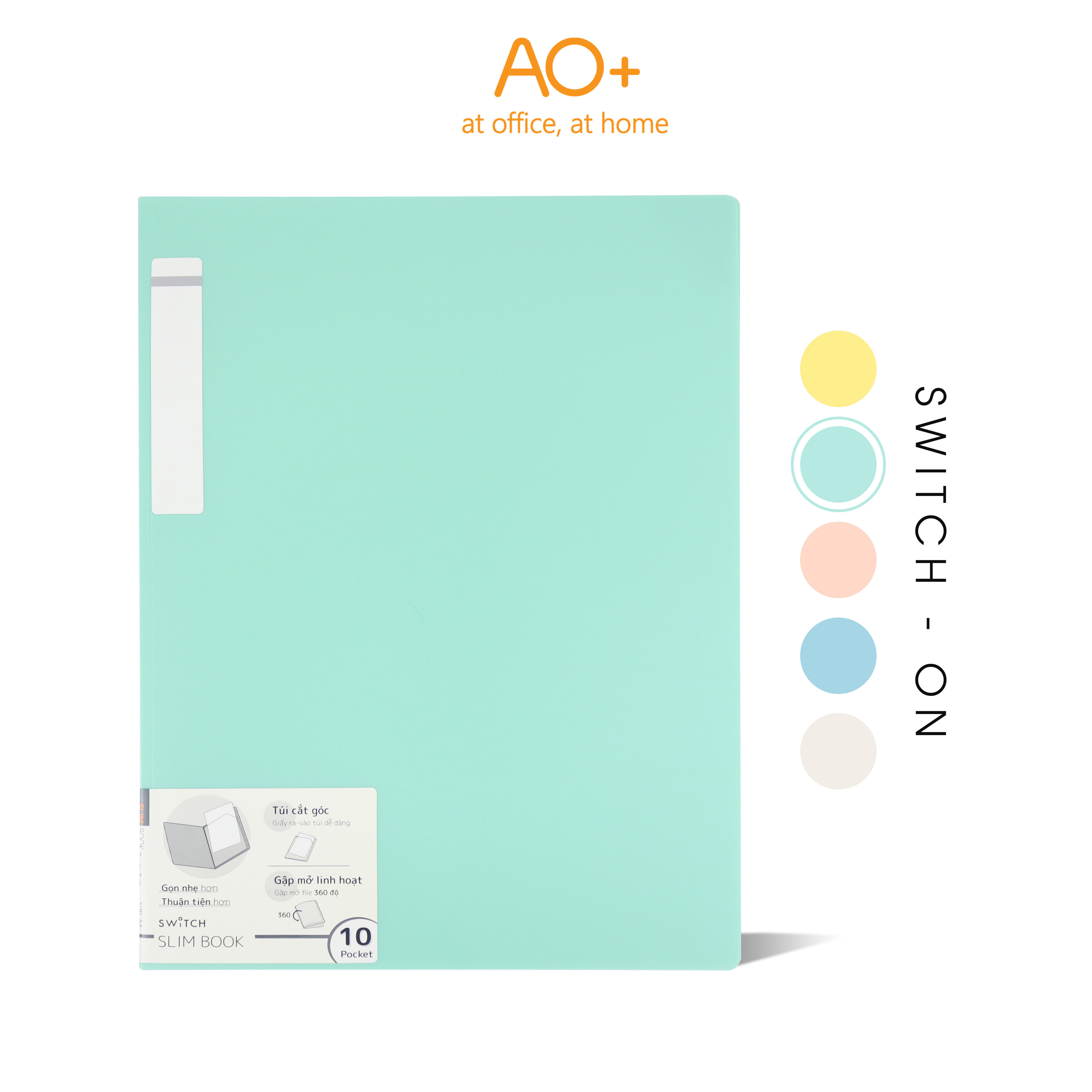 Bìa lá 10 túi Slim Book Switch AO+ là sản phẩm được thiết kế tối ưu công năng nhỏ gọn, tiện dụng. Bìa có thể gập 360 độ dễ dàng cầm bằng một tay; túi được thiết kế cắt góc giúp lấy tài liệu dễ dàng nhanh chóng.