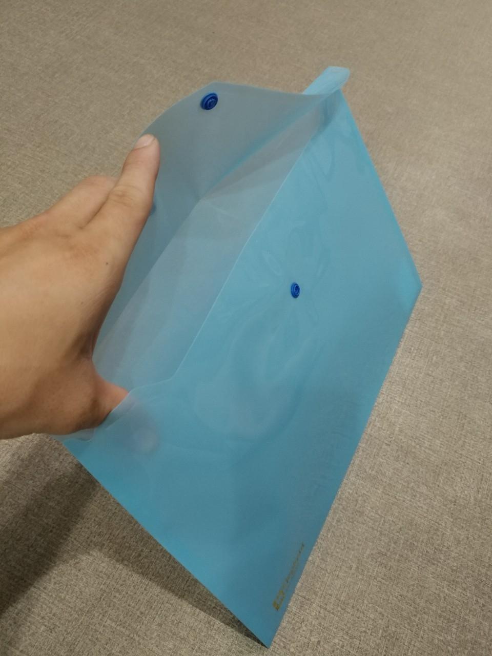 Bìa Nút Trong A4 Plus 0.15mm 89-V252 - Xanh Dương Sản phẩm được thiết kế như một bao thư cỡ lớn, có nắp kín và nút bấm chắc chắn giúp giữ cho tài liệu luôn nằm gọn