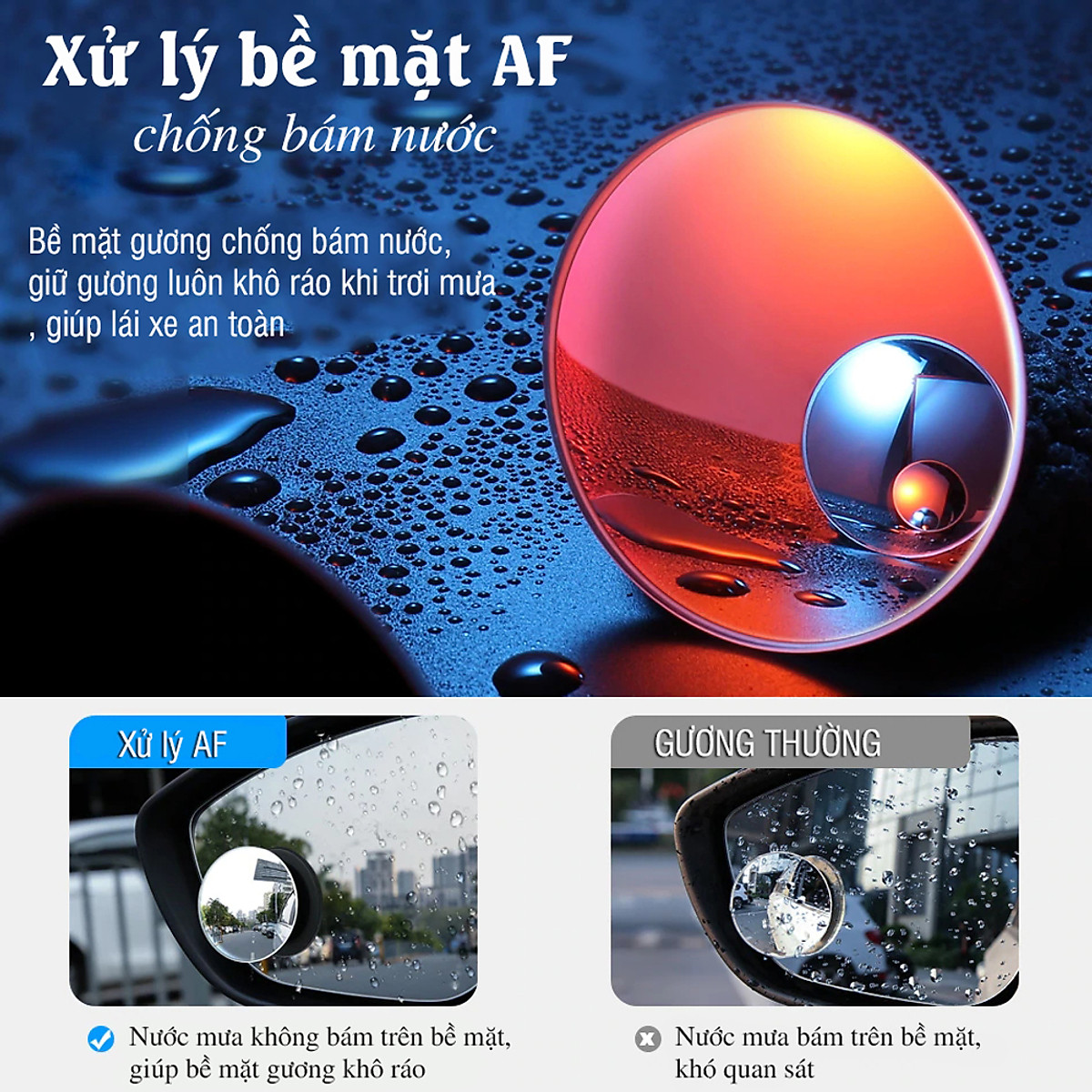 - Hàng Chính Hãng Thương Hiệu DoDoDios - Mặt của Gương là 100% Kính (gương) chuẩn nét Cao với góc rộng 170 độ giúp dễ dàng quan sát xe khi lùi xe hoặc các xe đi phía sau Đế gắn có thể giúp gương xoay 360 độ, giúp người lái dễ dàng điều chỉnh góc nhìn phù hợp hợp với mình Gương tràn viền, không có viền kính và tăng độ ngã của gương để gia tăng tối đa góc quan sát đồng thời giúp xe bạn trong có nhiều tính thẩm mỹ hơn so với các loại gương giá rẻ trên thị trường khác Điểm đặc biệt của Gương này ở phần xử lý bề mặt AF (chống bám vân tay) cũng như chống bám nước giúp bạn quan sát tốt cho dù trời mưa giảm thiểu rủi ro vì điểm mù gây ra