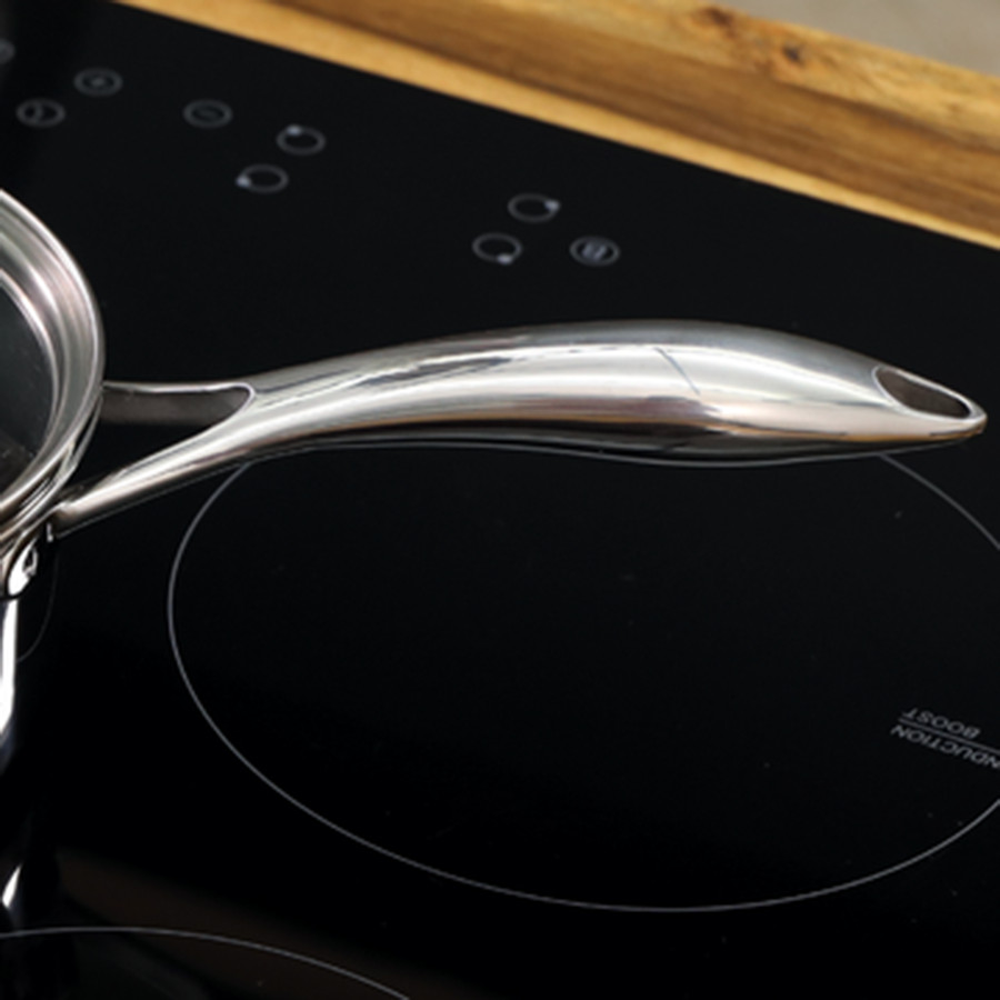 Lòng nồi chống dính Titanium bền bỉ. Công nghệ báo nhiệt thông minh Thermo-Signal. Tích hợp công nghệ phân phối nhiệt đều. Sử dụng được trên mọi loại bếp, kể cả bếp từ. Thiết kế