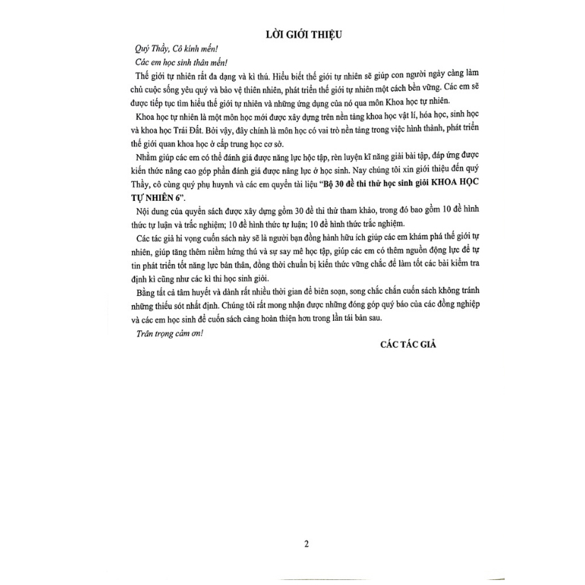 =================================== Bộ 30 Đề Thi Thử Học Sinh Giỏi Khoa Học Tự Nhiên 6 (Theo Chương Trình Giáo Dục Phổ Thông Mới) Năm học 2022-2023 là năm học đầu tiên áp dụng giảng dạy môn Khoa học tự nhiên 6 theo c