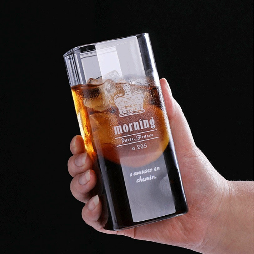 Chiếc cốc vuông kiểu Anh, thiết kế in chữ kiểu đơn giản, năng động và phong cách với thân cốc trong suốt, mang đến cho bạn tâm trạng thoải mái. Một trong các mặt của cốc có thiết kế hơi lõm với các đường gân để dễ cầm. Đồ trang trí tinh tế, phong cách và cá tính, không chỉ làm cốc uống nước, mà còn làm đồ trang trí máy tính để bàn