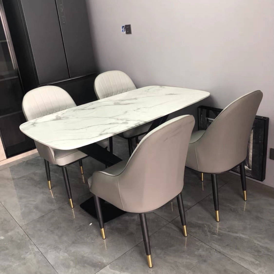 Bàn ăn mặt gỗ giả đá màu xám 1m4 chân sắt sơn tĩnh điện chữ X nhập khẩu TN 1217-14W đẹp cao cấp sang trọng Nội thất CAPTA tại TpHCM Bàn ăn mặt gỗ giả