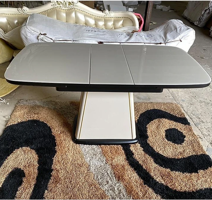 Được sản xuất 100% từ chất liệu gỗ tự nhiên. Mặt bàn đá cremic. Đây là dòng bàn ăn được ưa chuộng do thiết kế sang trọng, đẹp và vô cùng tinh tế. Bên cạnh