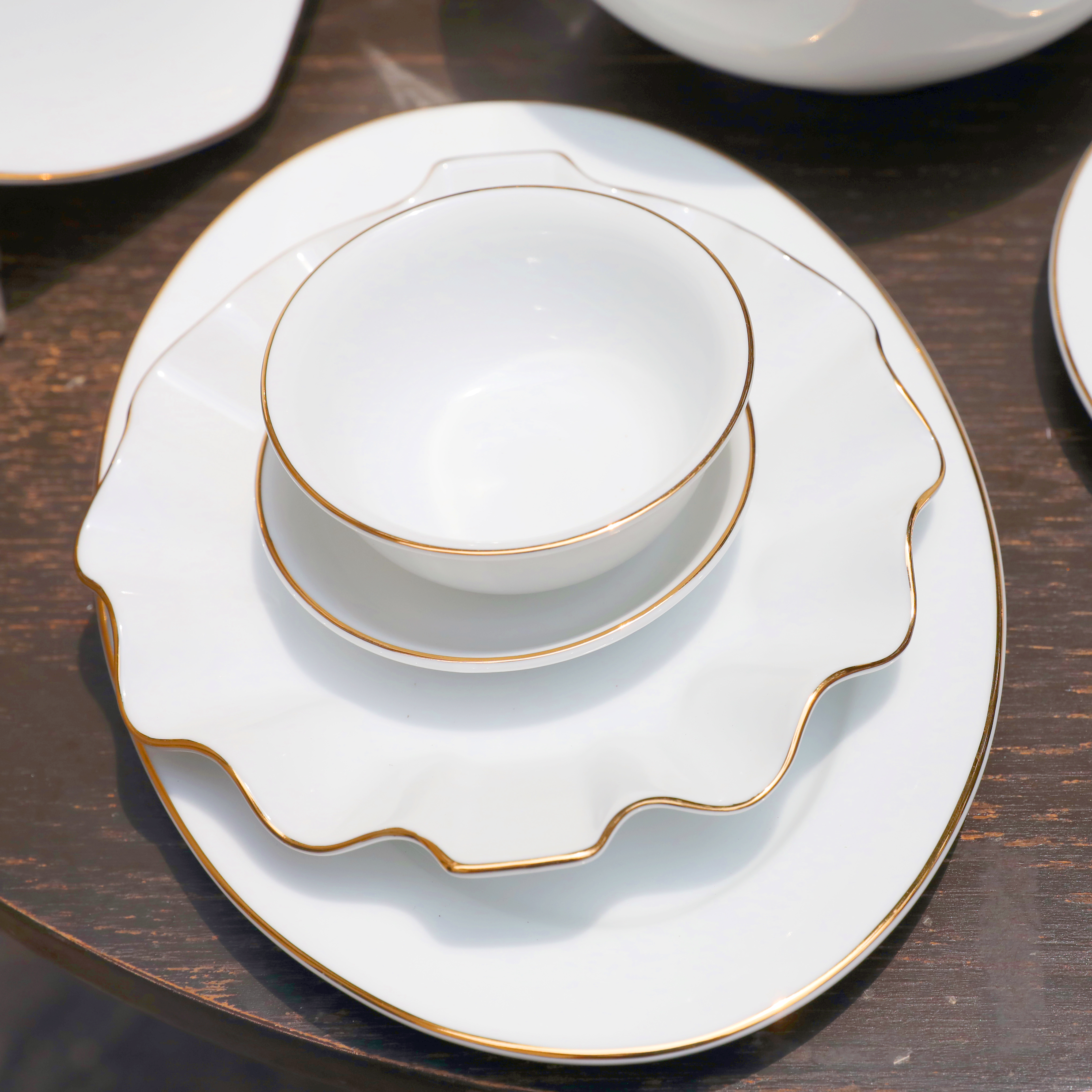 Bộ bát đĩa Hoàng Kim – Sứ trắng viền vàng