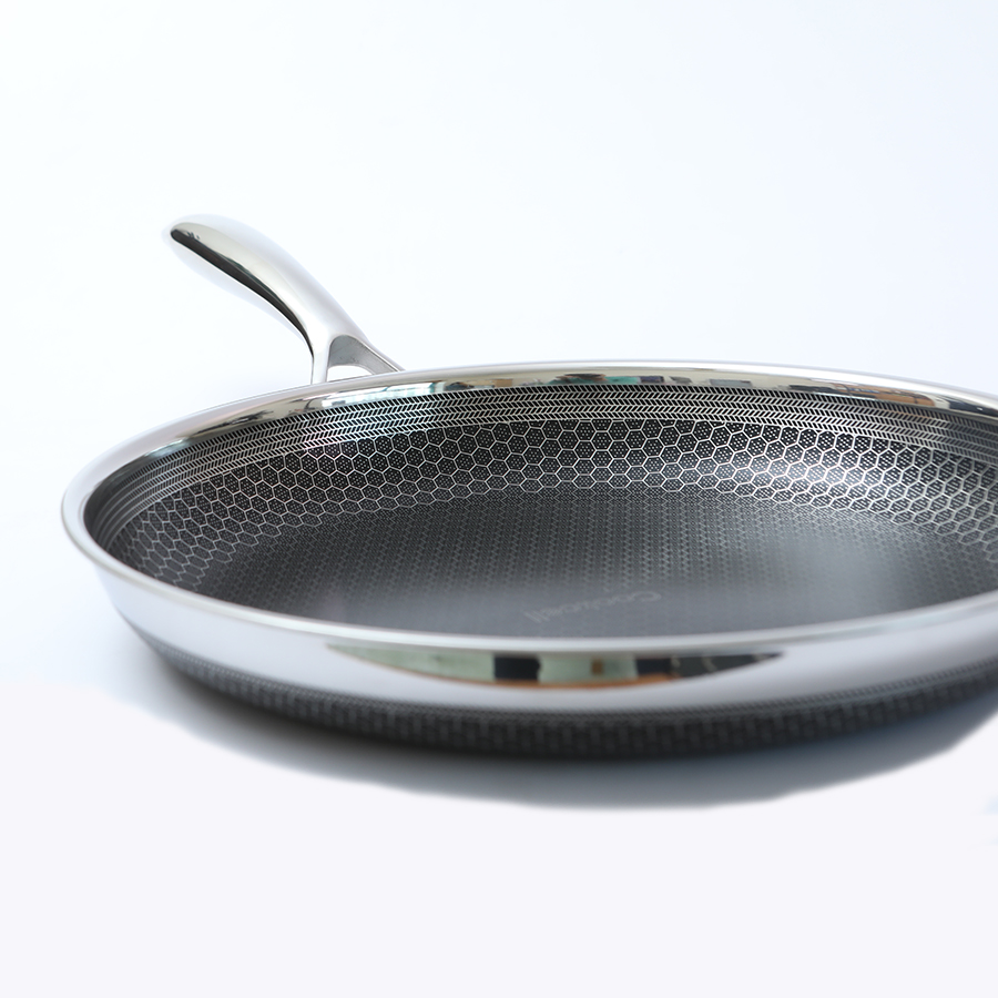 • Chảo tổ ong chống dính dạng tay cầm đáy liền 3 lớp Inox Sus304 vân chống trượt • Công nghệ Honey Comb - dạng tổ ong chống dính và chống quá nhiệt an toàn