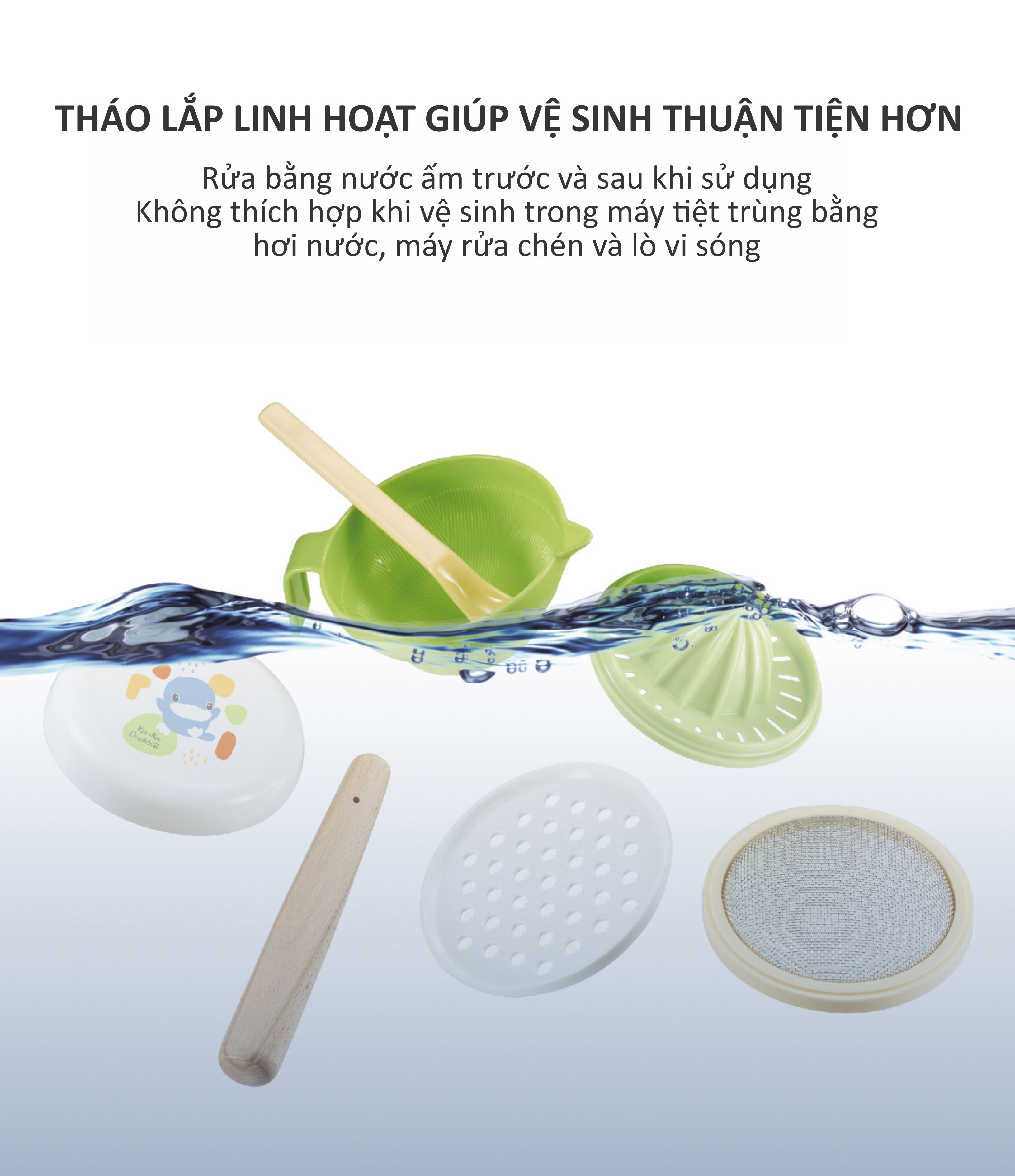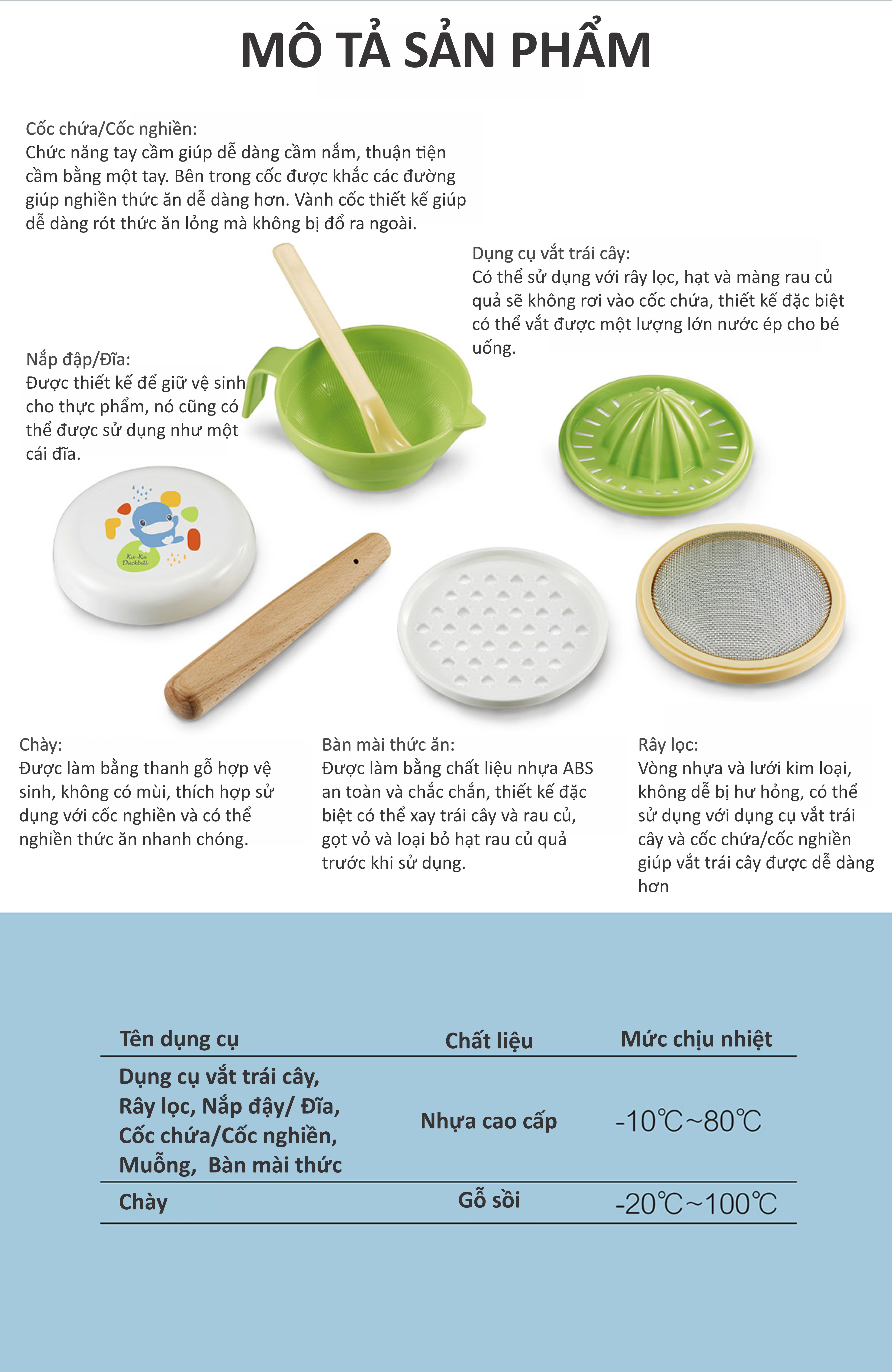 - Chày: dùng để giã nhuyễn thức ăn cho bé.
