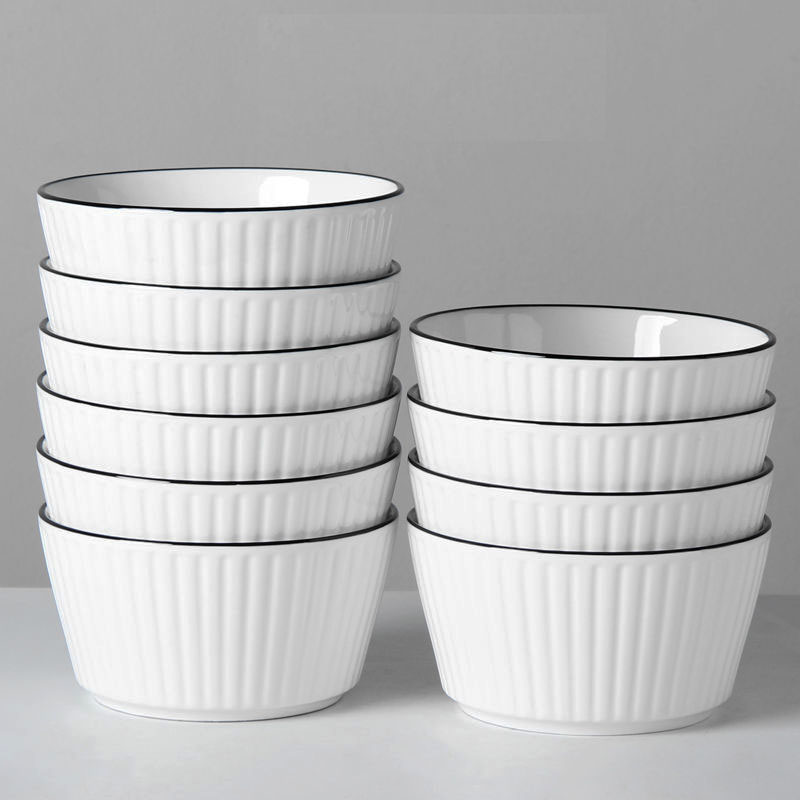 Bộ bát đĩa gốm sứ Gosu trắng cao cấp. Với họa tiết kim cương đơn giản viền đen sẽ làm không giảm bếp nhà bạn thêm phần bình yên, nhưng không kém phần sang trọng.