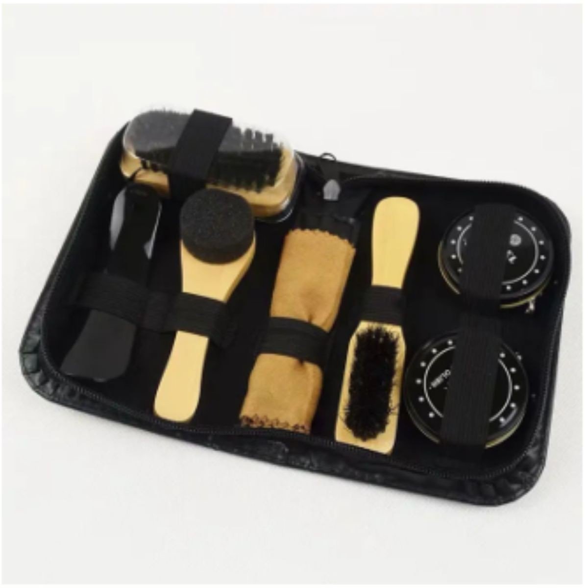 Bộ dụng cụ đánh giày 7 món kèm xi tiện lợi – Gồm đủ bộ si, cọ, nước lau giầy….xi đánh giày tiện lợi. Nhuộm và giữ màu làm sáng bóng giày dép – Bộ