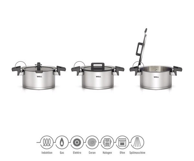 Các sản phẩm đúc chuyên nghiệp của WOLL là mẫu mực của chất lượng hạng nhất, lớp phủ chống dính lâu dài và nổi bật cho thiết kế trang nhã và kết quả nấu nướng tốt nhất. Nhiều bằng sáng chế và đổi mới, chẳng hạn như tay cầm có thể tháo rời, quy trình sản xuất công nghệ cao và nghề thủ công chuyên biệt, làm cho các sản phẩm WOLL trở nên độc đáo về chất lượng, độ tin cậy, thiết kế và chức năng. Điển hình có thể nói đến bộ nồi WOLL CONCEPT 3 nồi.