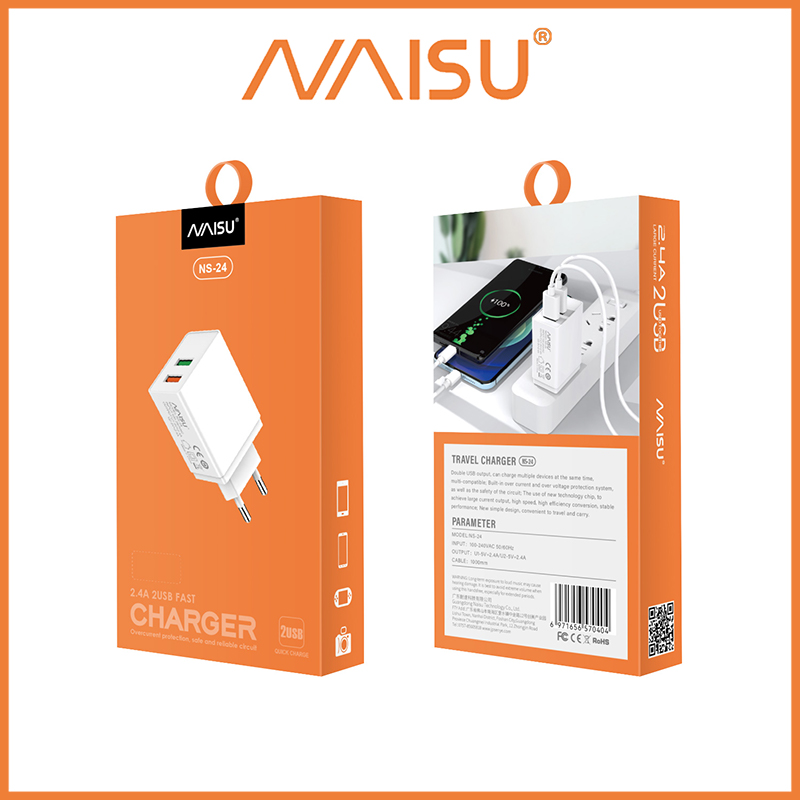 ✨Bộ sạc hai cổng, tương thích với các điện thoại di động phổ thông trên thị trường, NS-24 ID – 1815 - Hàng nhập khẩu
